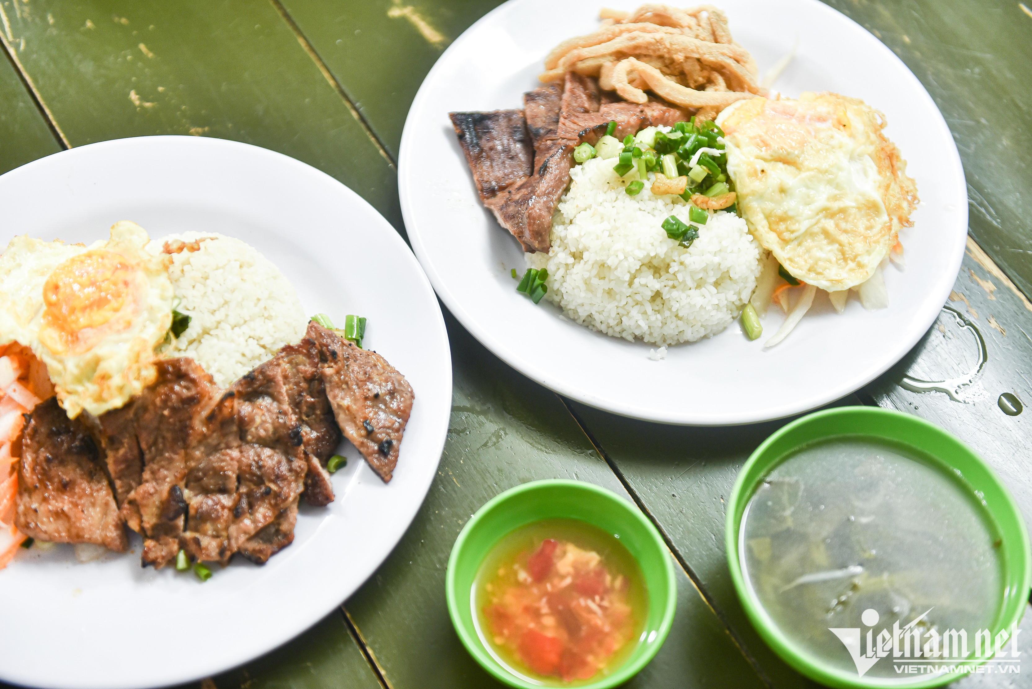 Cơm tấm là món ăn trứ danh ở TP.HCM và nhiều tỉnh miền Tây Nam Bộ. Ngày nay, món ăn này được mang ra các tỉnh thành ở miền Bắc, miền Trung để phục vụ thực kháchTại Thụy Khuê (Hà Nội) có một quán cơm tấm hơn 10 năm tuổi được rất nhiều người yêu thích. Quán bán từ 11h đến 14h và 17h đến 21h hàng ngày, đông nhất vào giờ ăn trưa. Thời điểm này, quán thường xuyên trong tình trạng kín chỗ, người giao hàng đứng chờ kín cửa. Trung bình mỗi ngày, quán bán 600 - 700 suất. Những ngày cuối tuần hoặc thời tiết mát mẻ, lượng khách sẽ đông hơnAnh Vũ Ngọc Toàn (38 tuổi) - chủ quán chia sẻ, vợ anh - chị Kiều là người Sóc Trăng. Chị vốn khéo nấu ăn, nhất là các món của miền Tây Nam Bộ. Sau này, khi chuyển ra Bắc lập nghiệp, anh Toàn động viên vợ mở bán món ăn miền Tây. "Lúc đầu, khách cũng vắng lắm nhưng sau nhiều lần thay đổi hương vị, gia vị cho phù hợp, khách đông dần. Nhiều người bảo, đi qua quán thấy mùi thịt thơm quá nên "liều" vào ăn thử rồi "nghiện" từ đó", anh Toàn chia sẻ