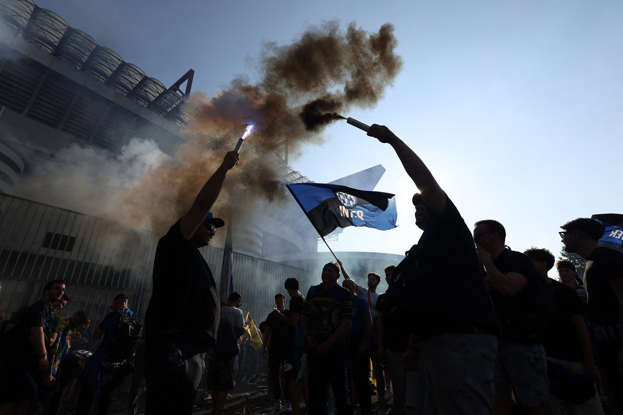 CĐV Inter ở trong nước cùng nhau kéo đến SVĐ Giuseppe Meazza để theo dõi qua màn hình lớn và cổ vũ đội nhà
