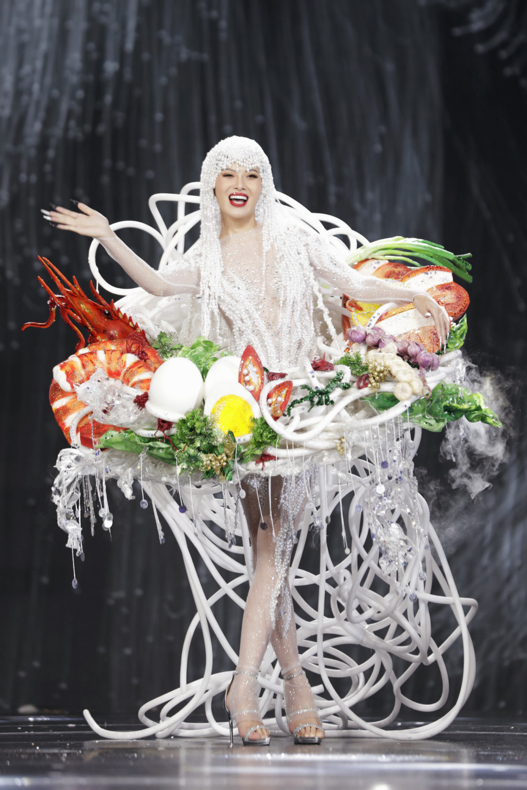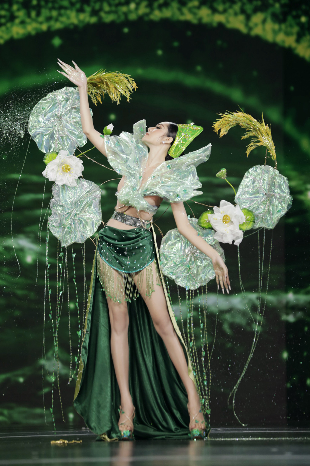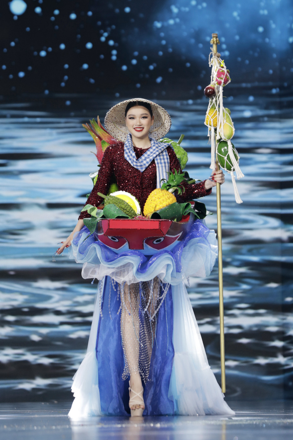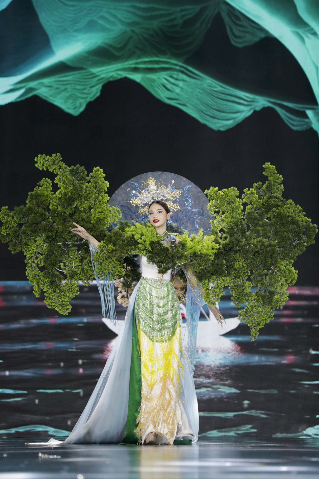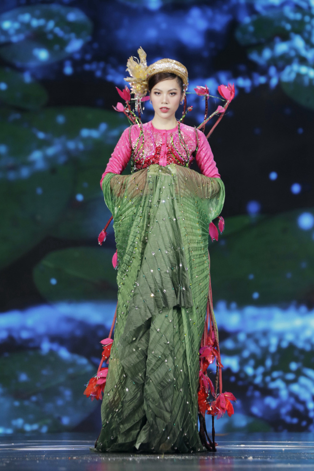 Nhóm của NTK Brian Võ khai thác những nét hình ảnh văn hoá như nghề làm mắm, chiến thắng trên sông Bạch Đằng, bánh xèo, hoa lục bình, quà cưới, hoa sen.... Dù mặc những bộ trang phục công phu, nhiều chi tiết nhỏ nhưng các thí sinh tự tin sải bước và ứng biến linh hoạt trong các trang phục, thổi hồn cho các bộ thiết kế.