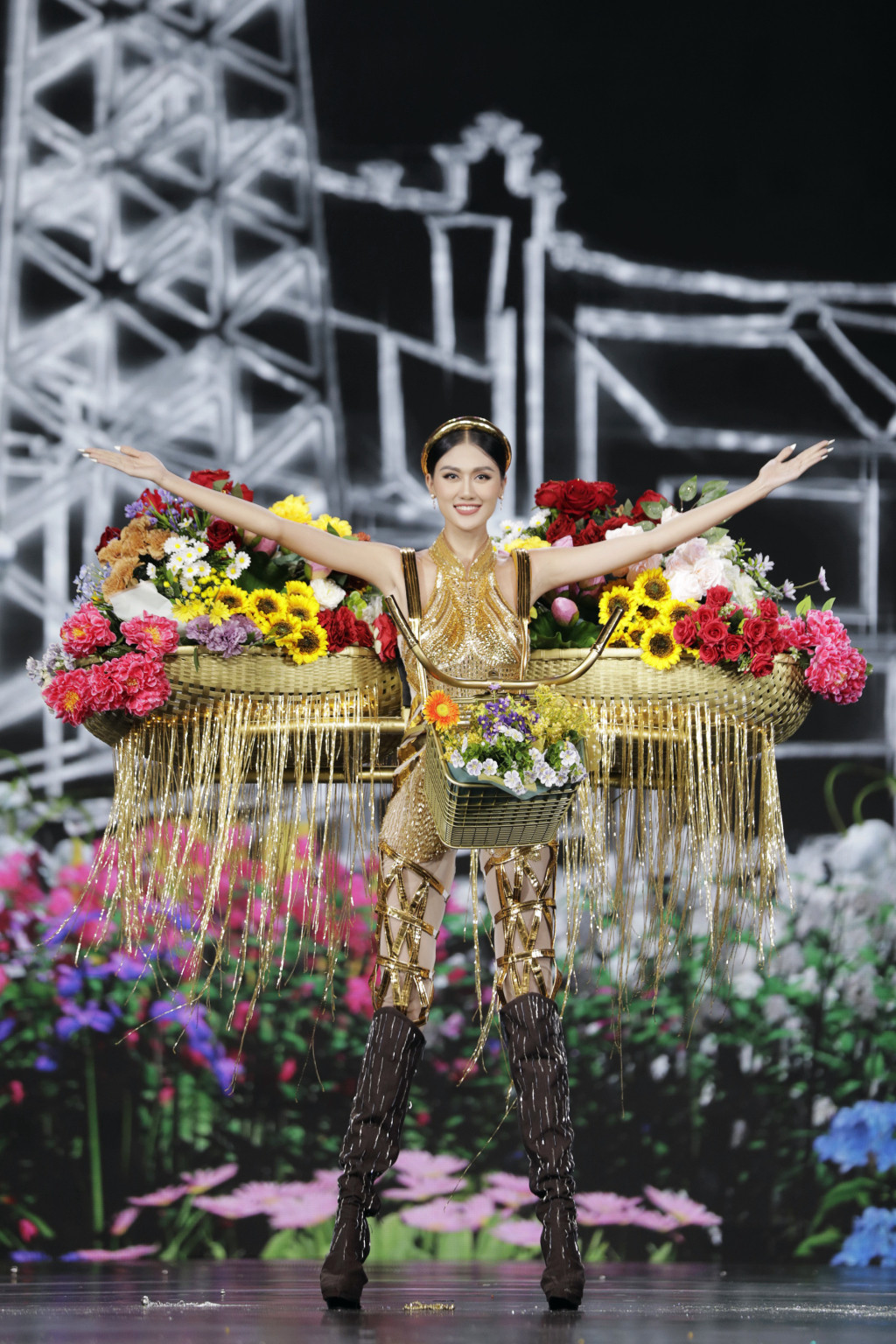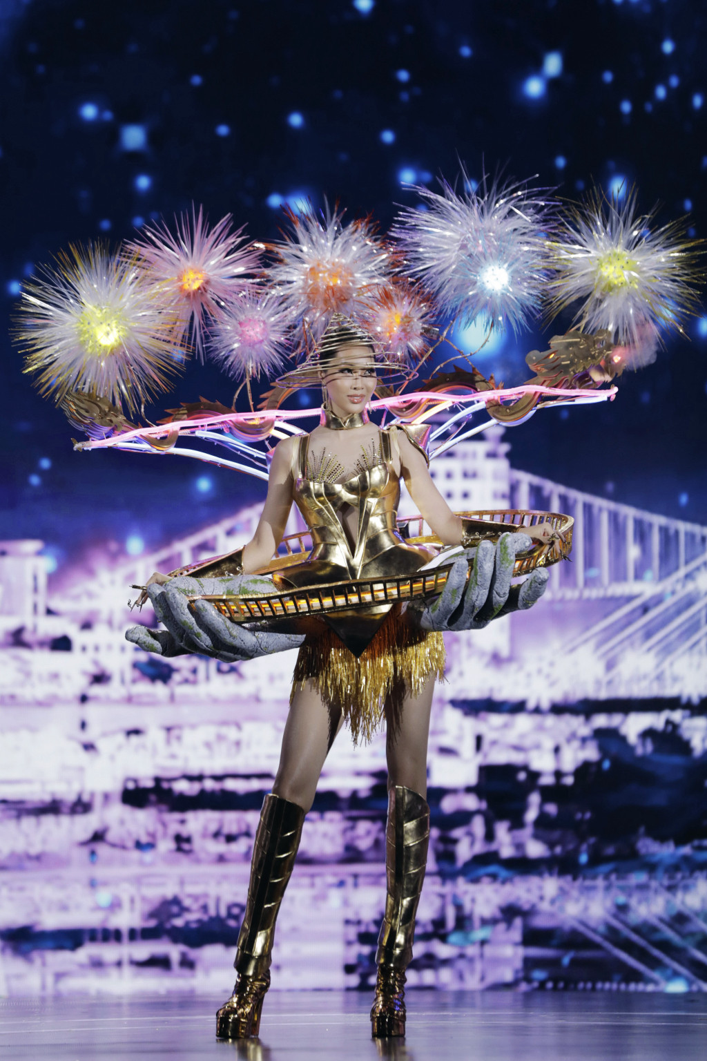 Tối 23/9, đêm thi Trang phục Văn hóa Dân tộc (National Costume) của cuộc thi Miss Grand Vietnam 2022 đã diễn ra tại nhà thi đấu Phú Thọ, TP.HCM. 50 thí sinh cùng các người đẹp Tiểu Vy, Mai Phương, Á hậu Lona Kiều Loan, Phương Anh, Ngọc Thảo, Bảo Ngọc, Thùy Dung, Hoa khôi Nam Em, Diệu Ngọc, Người đẹp áo dài Kim Thoa đã thể hiện 60 trang phục đến từ các nhà thiết kế và các sinh viên.