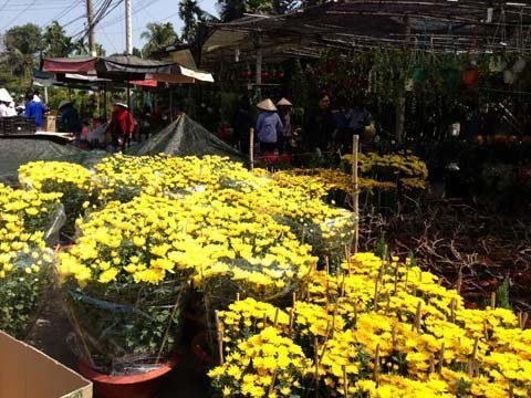 Một điểm tập kết hoa tết chờ thương lái đưa về TP Hồ Chí Minh.