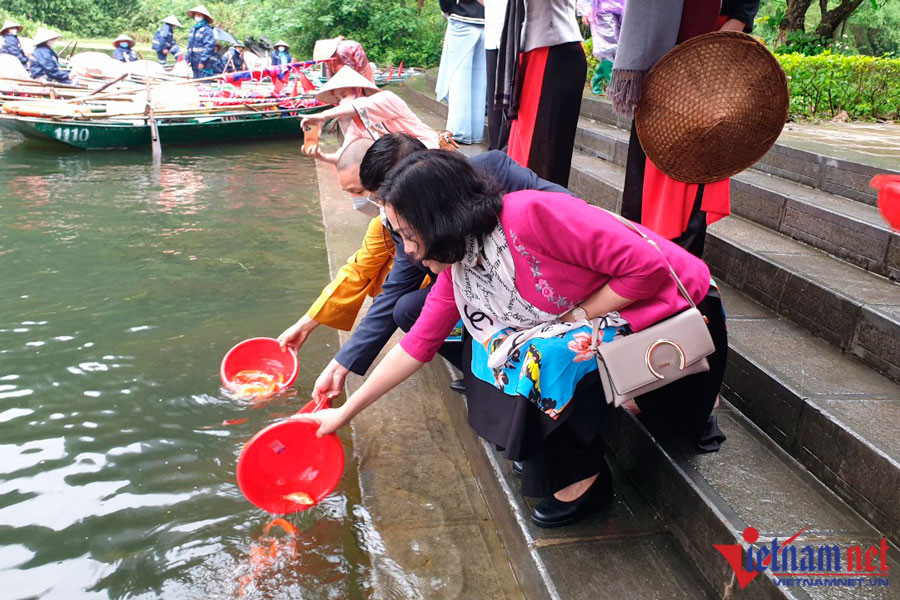 Khu quần thể Tràng An (Ninh Bình) của Việt Nam chính thức được UNESCO ghi danh là di sản văn hóa và thiên nhiên thế giới năm 2014. Ngày 18/3 âm lịch hàng năm, Ban quản lý quần thể danh thắng Tràng An sẽ tổ chức Lễ hội Thánh Quý Minh Đại Vương (hay còn gọi là Lễ hội Tràng An). Năm nay, BTC đánh trống khai hội vào ngày 17/3.Lễ hội được tổ chức nhằm tri ân và tôn vinh Đức Thánh Quý Minh Đại Vương, người đã có công trấn ải Sơn Nam - trấn phía Nam của Hoa Lư Tứ trấn - bảo vệ đất nước thời vua Hùng Vương thứ 18. Người là “thượng đẳng thần“, được các nhà vua qua nhiều triều đại ban sắc phong, được nhân dân khắp xứ thờ phụng.Lễ hội Tràng An năm nay được tổ chức với quy mô thu gọn hơn các năm trước, đảm bảo yêu cầu, quy định phòng, chống dịch Covid-19, nhưng vẫn giữ được bản sắc văn hóa truyền thống. Lễ hội là dịp giáo dục các thế hệ phát huy truyền thống yêu nước, lòng tự hào, tự tôn dân tộc và tinh hoa đoàn kết dân tộc Việt Nam trong sự nghiệp xây dựng và bảo vệ Tổ quốc. Với truyền thống nhiều năm nay, Lễ hội Tràng An đã tái hiện đầy đủ lịch sử Việt Nam qua các triều đại Đinh, Lê, Lý, Trần tại mảnh đất Cố đô Hoa Lư. Nơi đây từng là căn cứ địa chống giặc ngoại xâm với thành là núi, đường là sông, cung điện là hang động.Lễ hội được tổ chức với sự tham gia của hàng nghìn người gồm các tăng ni, phật tử, các diễn viên, quần chúng và hàng nghìn du khách thập phương với 2 phần chính gồm phần lễ và phần hội.Trong phần lễ, Ban Tổ chức thực hiện các nghi lễ cổ truyền với hoạt động lễ rước nước, rước thuyền rồng di chuyển qua các hang động đến đền Suối Tiên để thực hiện nghi lễ dâng hương Thánh Quý Minh Đại Vương.Trời mưa nhưng đoàn rước vẫn thực hiện đầy đủ các nghi lễ.Các đại biểu dâng hương tại Đền Trần – nơi thờ Đức thánh Quý Minh Đại Vương.Các đại biểu phóng sinh tại Đền Trần – nơi thờ Đức thánh Quý Minh Đại Vương để cầu quốc thái dân an.