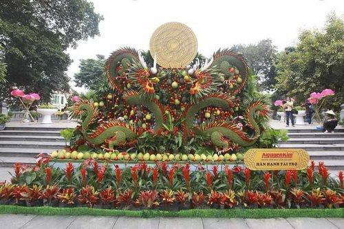 | Tác phẩm "Lưỡng long chầu trống đồng" của các nghệ nhân đến từ TP.HCM. (Ảnh TTO) |