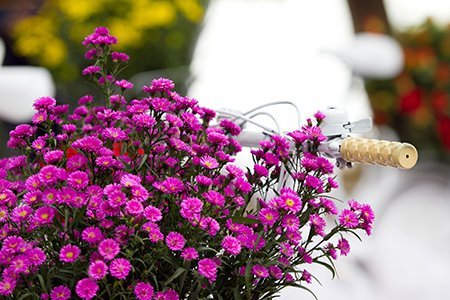 | Những chiếc xe được sơn cách điệu màu trắng và "mang" trên mình những bó hoa rực rỡ nhiều sắc mầu. (Ảnh TTO) |