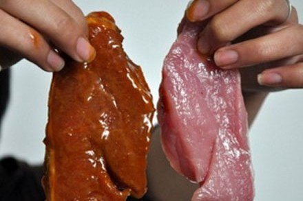 Qua kiểm tra, mẫu một số loại thịt bò và cừu giả còn chứa lượng nitrit ở mức 8,69 gram trong 1kg - cao gấp 2.000 lần tiêu chuẩn đối với thịt tươi và đông lạnh - cùng nhiều hóa chất, thuốc nhuộm, chất kết dính chứa kim loại nặng có khả năng gây ung thư. Đối với người lớn, chỉ cần ăn 3 gram nitrit là có thể dẫn đến tử vong.