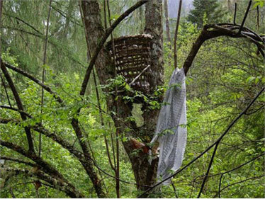 con chết, thi thể sẽ được bó lại bằng vỏ cây hoa treo lên cây vì người ta sợ
