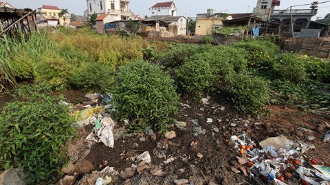 Những ao chuôm trong làng bị lấp kín bởi rác sản xuất, sinh hoạt.