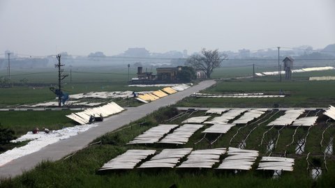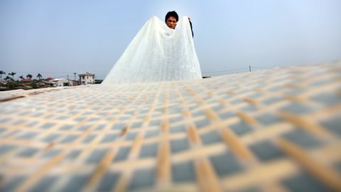 - Thực tế, đây là công đoạn phơi miến ở hai xã từ lâu nổi tiếng với nghề làm miến dong, xã Minh Khai và Dương Liễu (Hoài Đức – Hà Nội), với công đoạn phơi miến bên những vệ đường giao thông bụi mù.