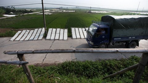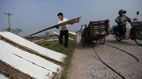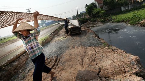 (VietNamNet) - Thực tế, đây là công đoạn phơi miến ở hai xã từ lâu nổi tiếng với nghề làm miến dong, xã Minh Khai và Dương Liễu (Hoài Đức – Hà Nội) với công đoạn phơi miến bên những vệ đường giao thông bụi mù.