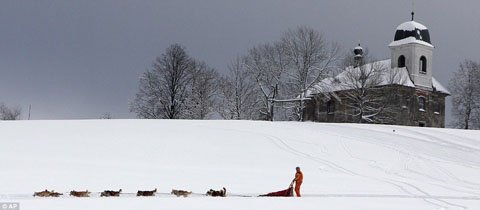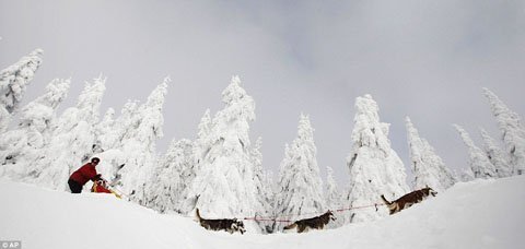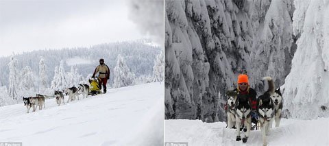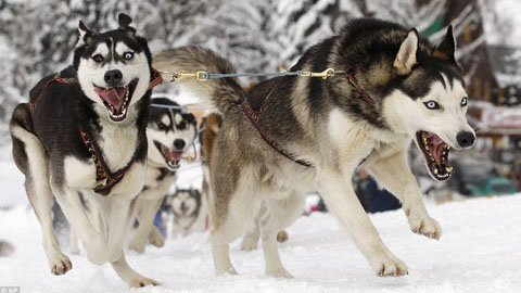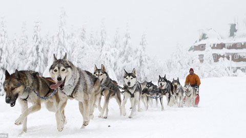 Trong lúc này, nơi đây đang tổ chức cuộc đua xe kéo dành cho chó. Đây được cho là cuộc đua gay cấn nhất trên thế giới.