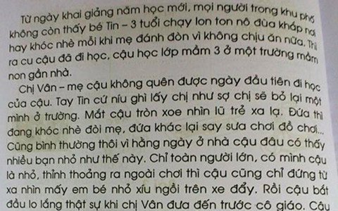 “Từ ngày khai giảng năm học mới, mọi người trong khu phố không còn thấy bé Tin – 3 tuổi chạy lon ton nô đùa khắp nơi hay khóc nhè mỗi khi mẹ đánh đòn vì không chịu ăn nữa.”