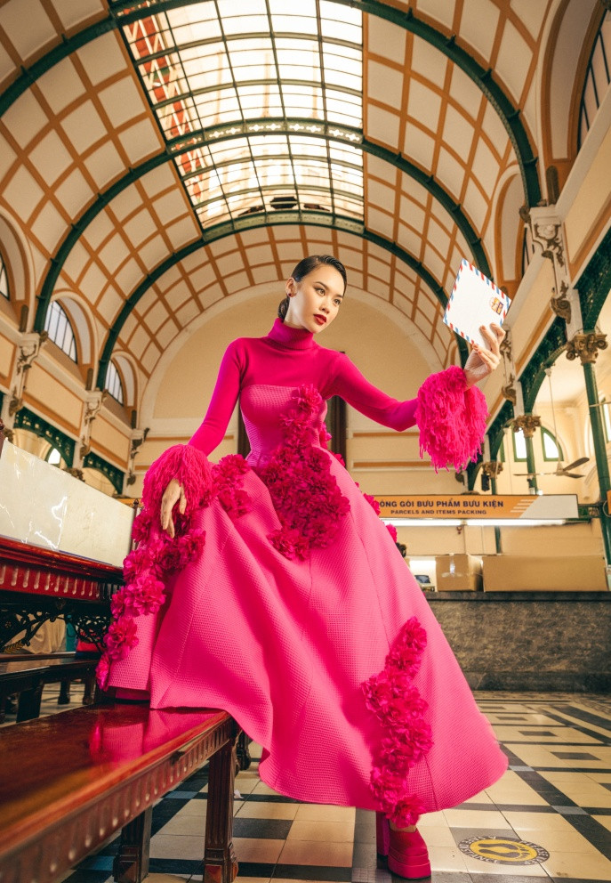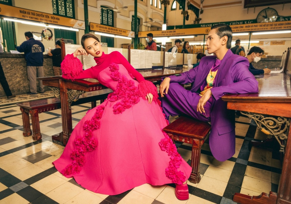 Nhà thiết kế Vũ Ngọc và Son lên ý tưởng quảng bá Sài Gòn sau show diễn "Ký ức tuổi thơ" hồi đầu tháng 12/2022. Họ mời các người mẫu diện trang phục màu sắc chụp ảnh tại một số địa điểm quen thuộc. 2 người mẫu tạo dáng ở Bưu điện TP.HCM - công trình kiến trúc nổi tiếng có tuổi đời hơn 130 năm.