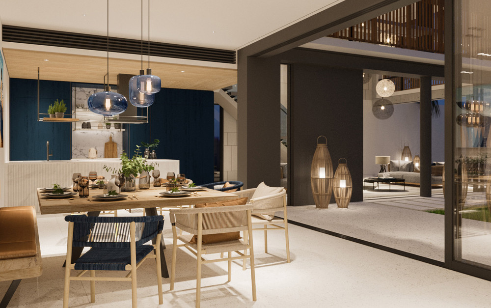 Chị Thu quan tâm đến căn Villa A có diện tích hơn 300m2 với 3 phòng ngủ và bể bơi riêng, hoàn hảo cho nhu cầu nghỉ dưỡng của một gia đình đa thế hệ như nhà chị với không gian kết nối hài hòa tiện lợi cho người lớn tuổi. Với vị trí trung tâm, dễ dàng kết nối cụm tiện ích của khu nghỉ dưỡng, các bạn nhỏ sẽ có một kỳ nghỉ thú vị tại khu hồ bơi được thiết kế như một công viên nước thu nhỏ cùng dòng sông lười dài 270m bao quanh và Kiddie’s Club.