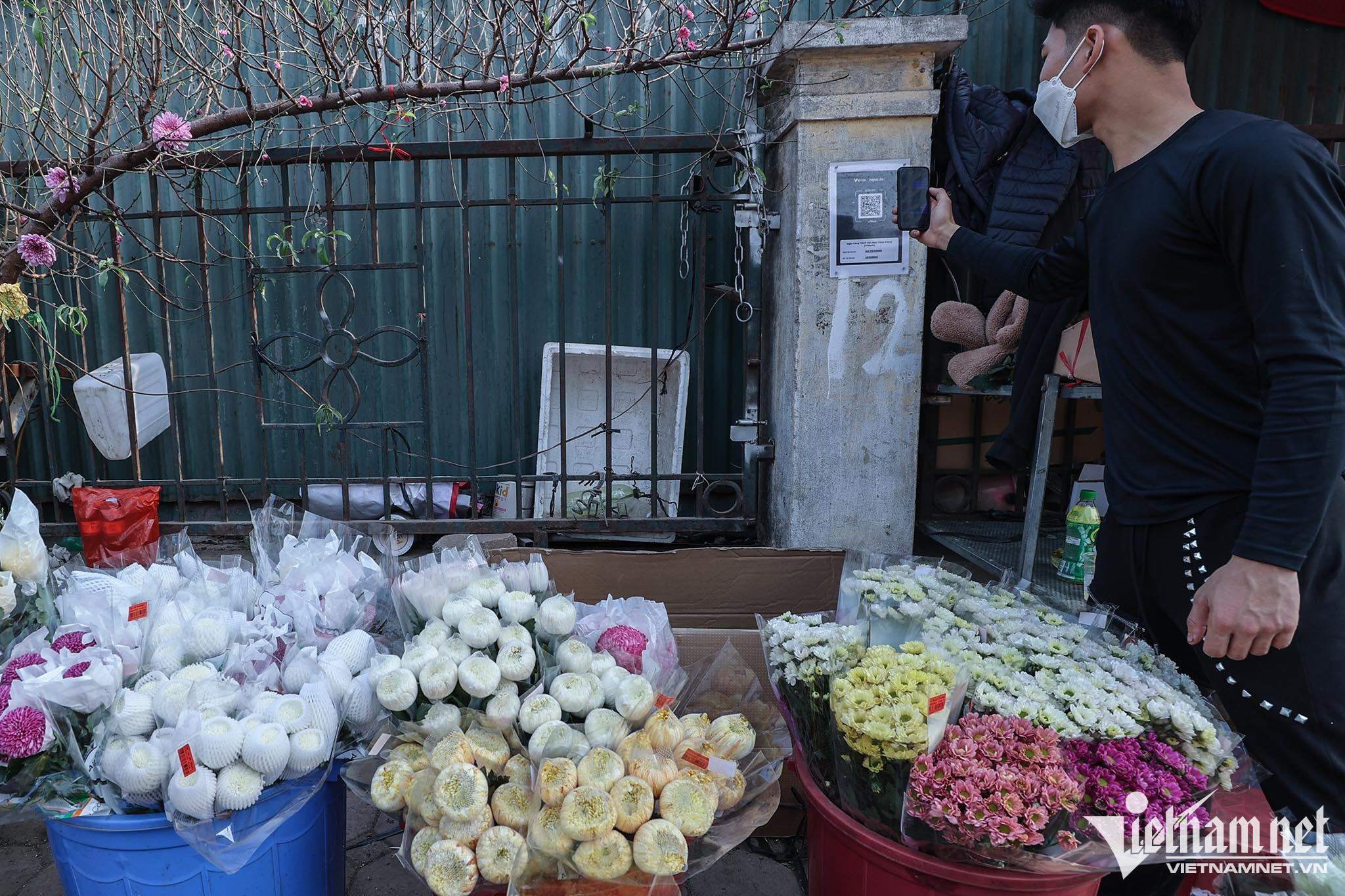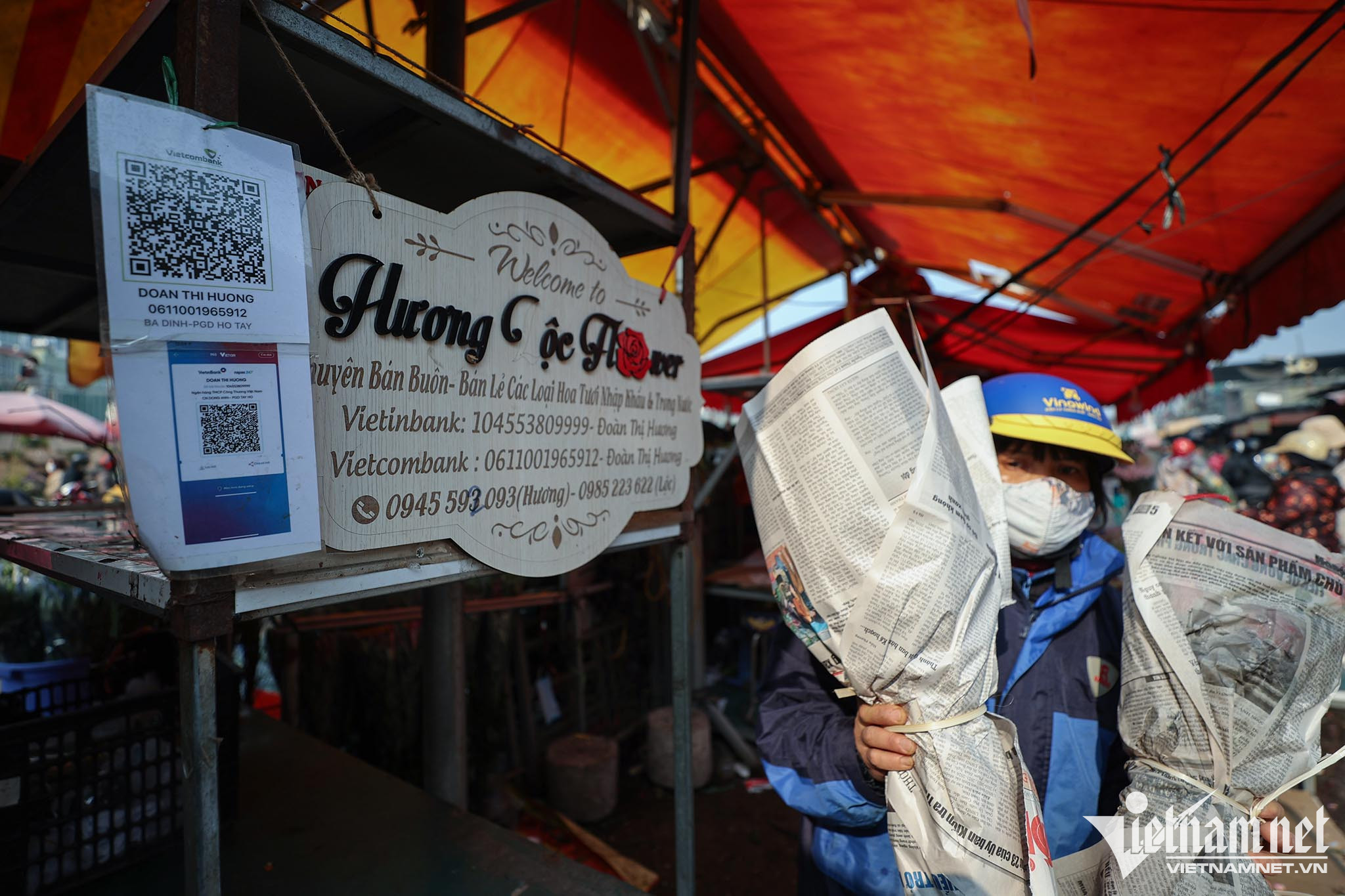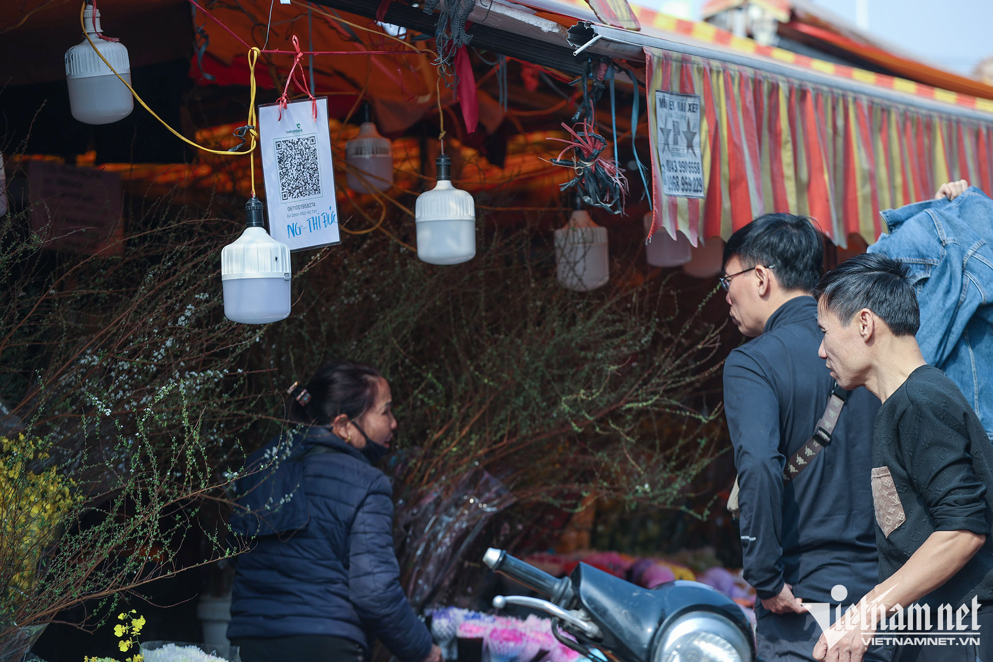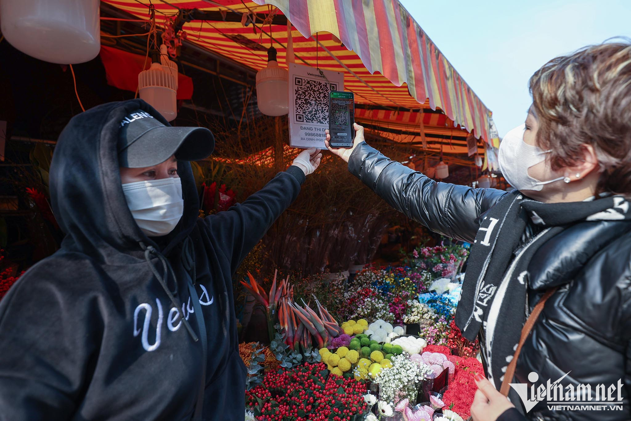 Chợ hoa Quảng An, Quảng Bá ngày 30 Tết tấp nập khách đến chọn mua hoa để trưng bày được tươi trong nhà trong 3 ngày đầu năm mới.Nhờ chuyển đổi số, Tết Nguyên đán năm nay, nhiều tiểu thương tại chợ đã kịp bắt nhịp xu hướng.Một số gian hàng áp dụng công nghệ hiện đại như dán mã QR cho khách thanh toán thuận tiện, nhanh gọn. Hầu như mỗi người trưởng thành hiện nay đề sở hữu một chiến điện thoại smartphone, có tài khoản ngân hàng, dễ dàng sử dụng trong các giao dịch mua bán.Mã QR cực kỳ thuận tiện, được dán ngay tại cột trước cửa gian hàng.Chị Tiên (nhà ở đường Âu Cơ), chủ một quầy hoa tết tại chợ Tây Hồ bày tỏ, rất ủng hộ khách hàng thanh toán bằng mã QR. Chị mong muốn nếu ai cũng thanh toán bằng cách này chị sẽ không phải liên tục chạy đi chạy lại để đổi tiền lẻ.Chị Hồng (nhà ở quận Tây Hồ) cùng con gái đi chọn mua hoa Tết cũng chọn phương thức thanh toán bằng mã QR mà theo chị rất nhanh gọn, lại không phải mang theo tiền mặt dễ rơi, mất trộm...Hầu hết quầy bán hoa, cây cảnh tại chợ hoa Tết thuộc quận Tây Hồ năm nay đều treo bảng mã QR.Khá nhiều khách hàng dù chưa quét bao giờ, nay cũng nhờ tiểu thương mà thành thạo hơn với công nghệ này.Bảng mã QR treo tại quầy kinh doanh hoa tết của chị Đoàn Thị Hương đã có từ nhiều tháng qua.Tuy thuận tiện nhưng cũng có một số ít hộ kinh doanh cũng chưa quen sử dụng. Chủ hộ kinh doanh hoa này cho biết, mỗi lần có khách quét mã thanh toán chị vẫn phải nhờ các hộ kế bên kiểm tra hộ số tiền trên điện thoại.Số ít hộ kinh doanh sử dụng cách thanh toán bằng cách nhập số tài khoản, mất thời gian hơn so với quét mã.
