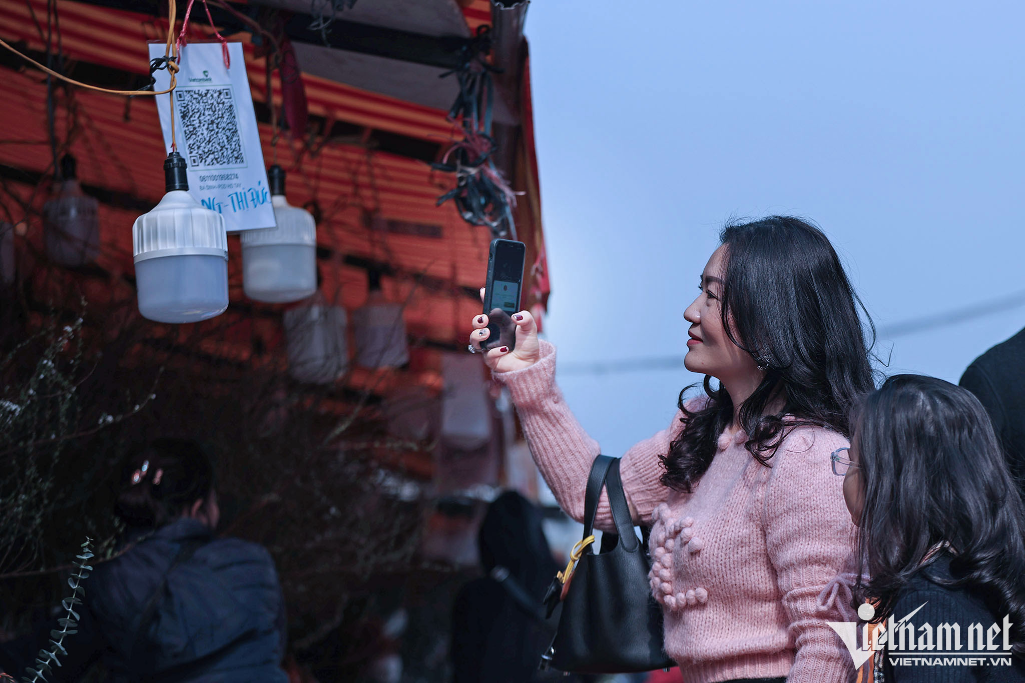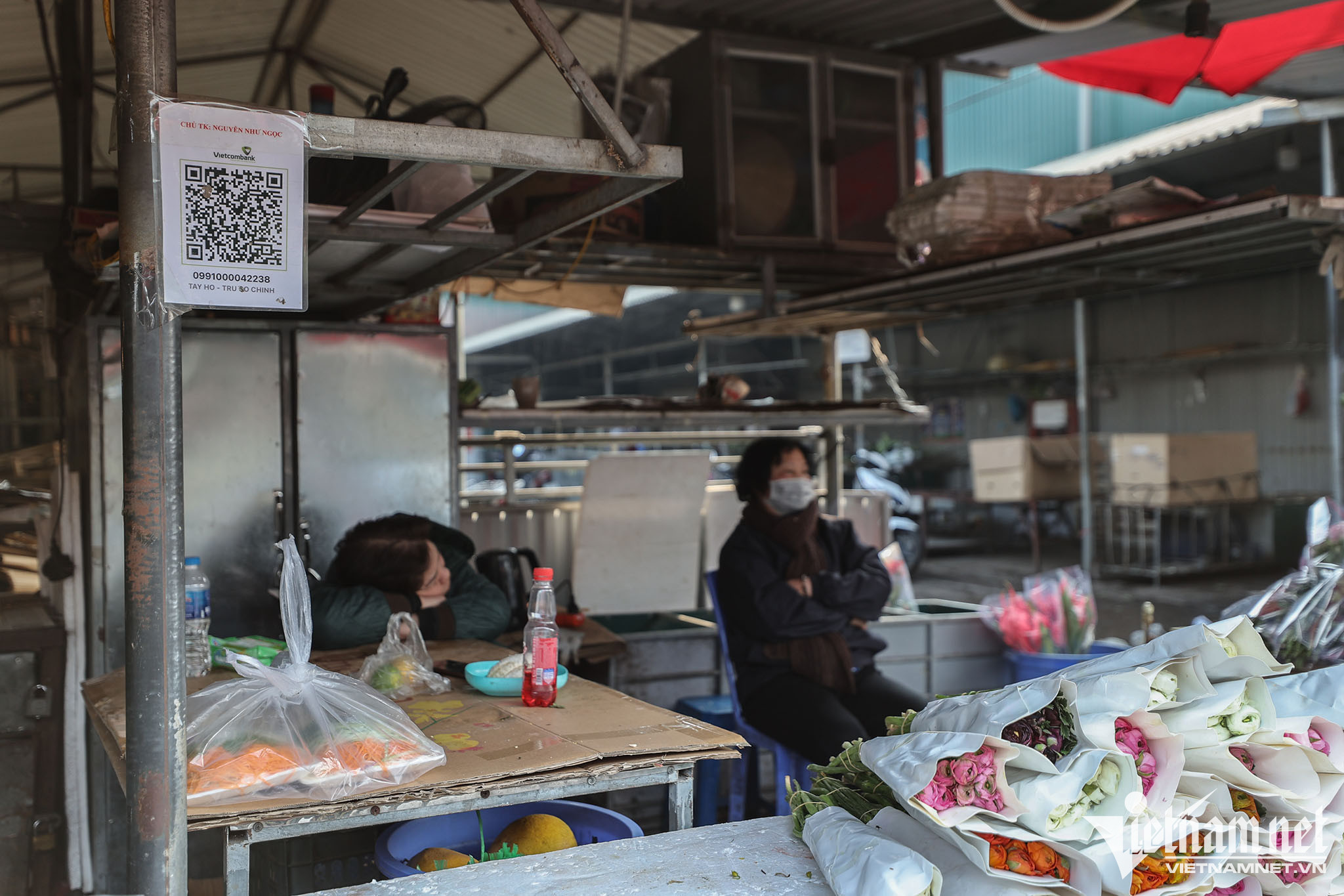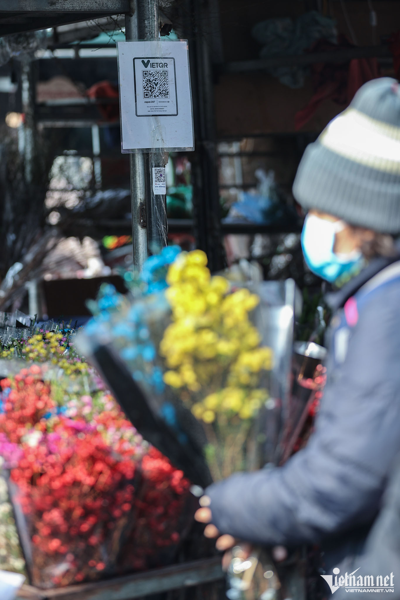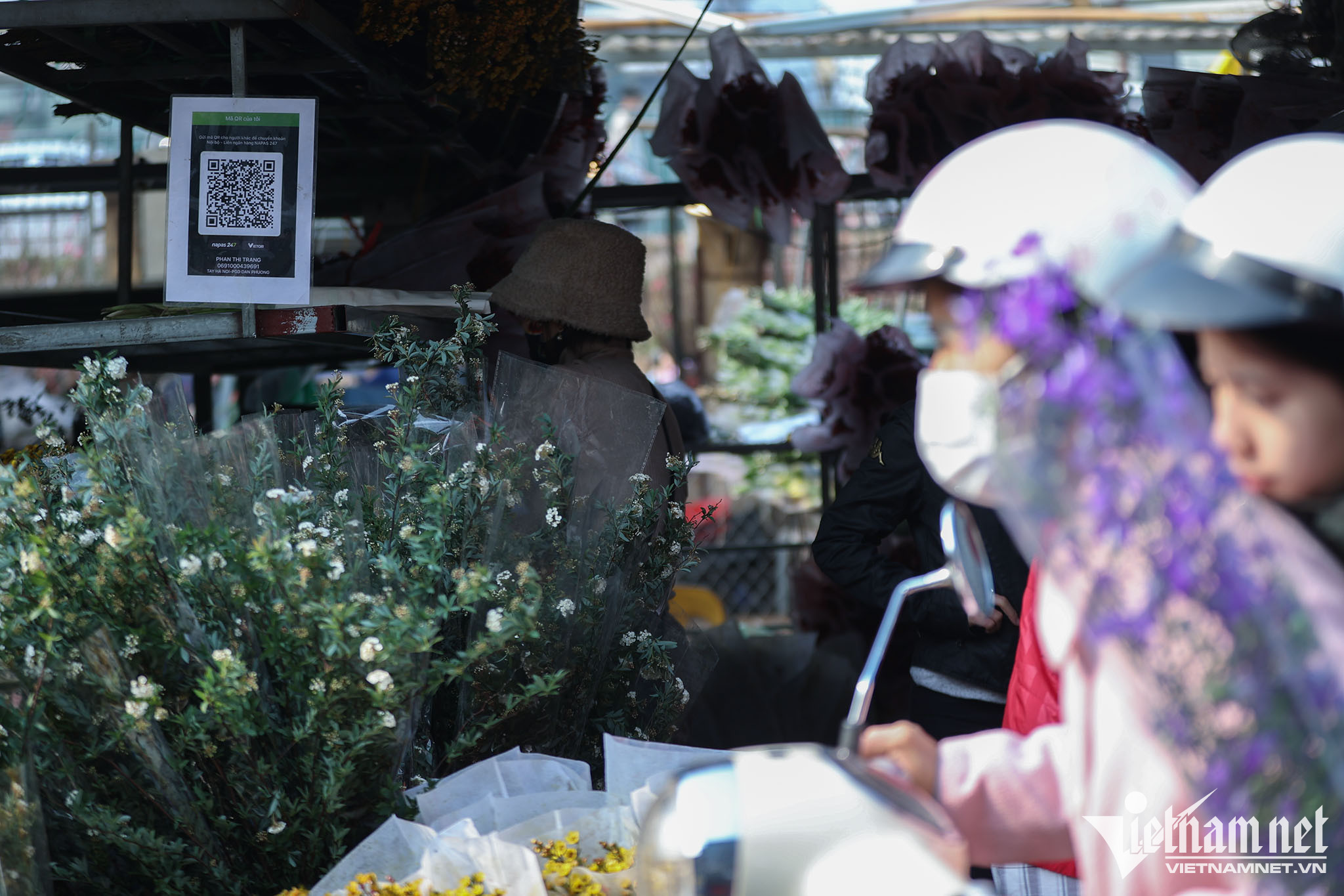 Chợ hoa Quảng An, Quảng Bá ngày 30 Tết tấp nập khách đến chọn mua hoa để trưng bày được tươi trong nhà trong 3 ngày đầu năm mới.Nhờ chuyển đổi số, Tết Nguyên đán năm nay, nhiều tiểu thương tại chợ đã kịp bắt nhịp xu hướng.Một số gian hàng áp dụng công nghệ hiện đại như dán mã QR cho khách thanh toán thuận tiện, nhanh gọn. Hầu như mỗi người trưởng thành hiện nay đề sở hữu một chiến điện thoại smartphone, có tài khoản ngân hàng, dễ dàng sử dụng trong các giao dịch mua bán.Mã QR cực kỳ thuận tiện, được dán ngay tại cột trước cửa gian hàng.Chị Tiên (nhà ở đường Âu Cơ), chủ một quầy hoa tết tại chợ Tây Hồ bày tỏ, rất ủng hộ khách hàng thanh toán bằng mã QR. Chị mong muốn nếu ai cũng thanh toán bằng cách này chị sẽ không phải liên tục chạy đi chạy lại để đổi tiền lẻ.Chị Hồng (nhà ở quận Tây Hồ) cùng con gái đi chọn mua hoa Tết cũng chọn phương thức thanh toán bằng mã QR mà theo chị rất nhanh gọn, lại không phải mang theo tiền mặt dễ rơi, mất trộm...Hầu hết quầy bán hoa, cây cảnh tại chợ hoa Tết thuộc quận Tây Hồ năm nay đều treo bảng mã QR.Khá nhiều khách hàng dù chưa quét bao giờ, nay cũng nhờ tiểu thương mà thành thạo hơn với công nghệ này.Bảng mã QR treo tại quầy kinh doanh hoa tết của chị Đoàn Thị Hương đã có từ nhiều tháng qua.Tuy thuận tiện nhưng cũng có một số ít hộ kinh doanh cũng chưa quen sử dụng. Chủ hộ kinh doanh hoa này cho biết, mỗi lần có khách quét mã thanh toán chị vẫn phải nhờ các hộ kế bên kiểm tra hộ số tiền trên điện thoại.Số ít hộ kinh doanh sử dụng cách thanh toán bằng cách nhập số tài khoản, mất thời gian hơn so với quét mã.