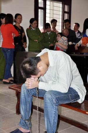 Lẫn trong tiếng xích cùm chân leng keng quết dưới nền đất, Quang lê từng bước chân nặng nề vào phòng xử trong ánh mắt căm phẫn của gia đình bị hại và những người dự khán. Vũ Văn Quang gầy hốc hác, gò má nhô cao, hai mắt quầng sâu buồn bã và đầy vẻ lo lắng trước phiên xét xử.
