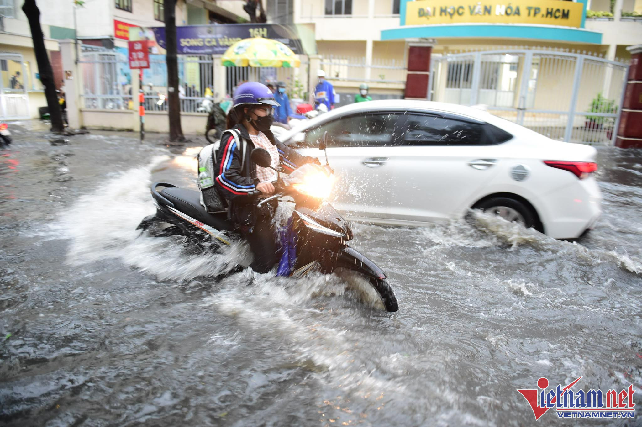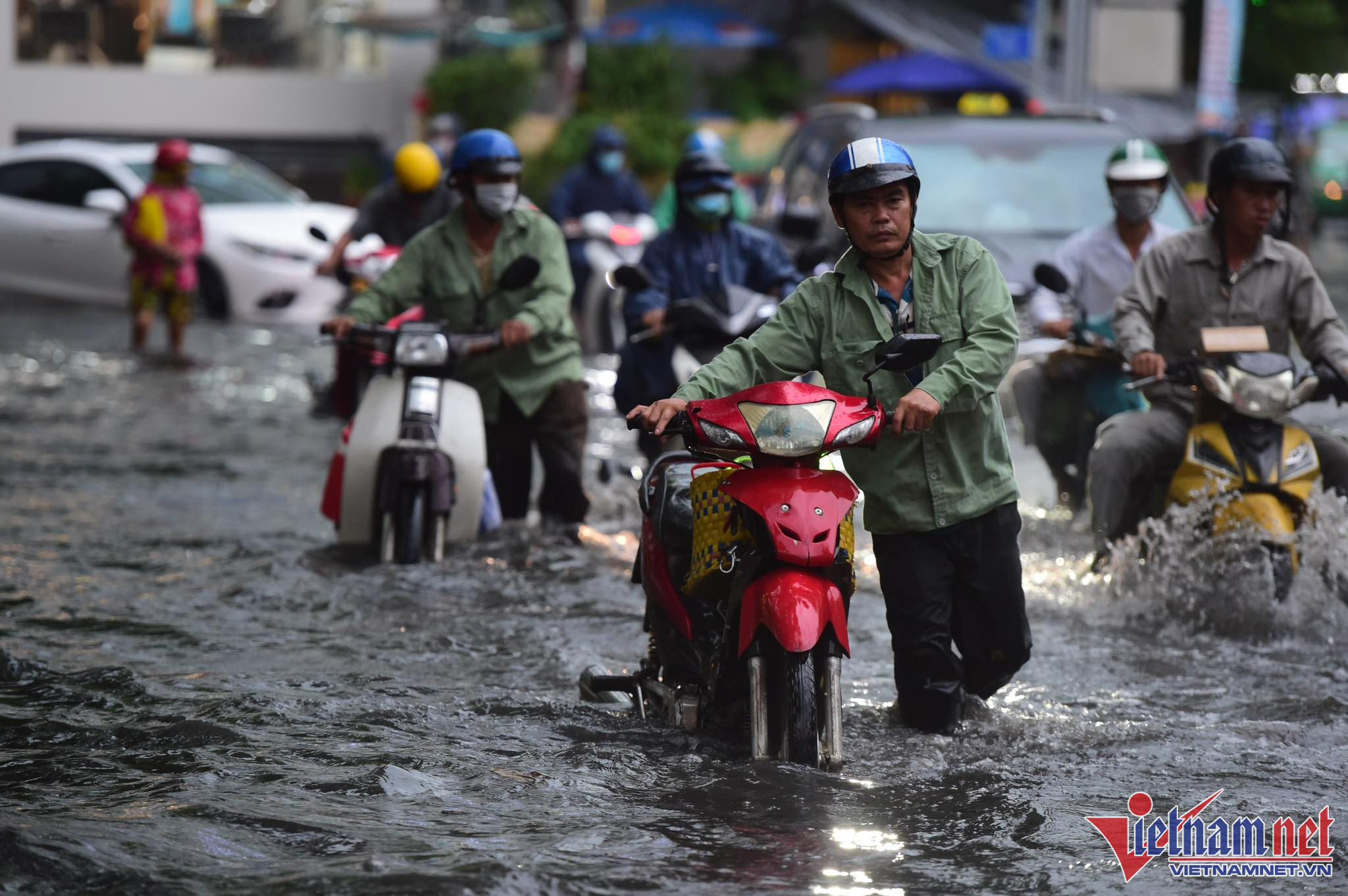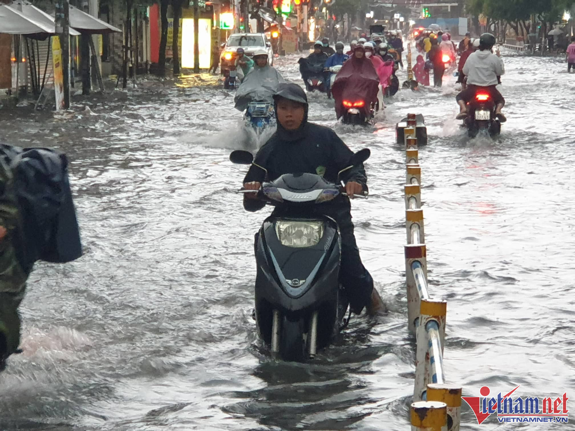 Cả đoạn đường Nguyễn Văn Khối, quận Gò Vấp dài 1km ngập sâu nửa mét. Ngập đúng vào giờ cao điểm gây khó khăn cho người dân khi di chuyển, nhiều hàng quán kinh doanh bị ảnh hưởngPhụ huynh đón con tan học di chuyển rất khó khănHàng loạt xe chết máy do nước ngập sâu Xe máy phải đi sát dải phân cách, tránh chỗ nước sâu ở mép đường Đường Quốc Hương thuộc 'khu nhà giàu' Thảo Điền (TP Thủ Đức) ngập sâu kéo dàiKhổ sở đón con về sau giờ tan trường