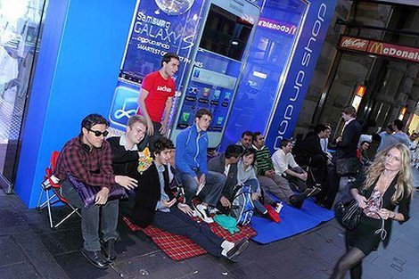Những người xếp hàng đợi mua Galaxy S II giá rẻ. Ảnh: Samsung