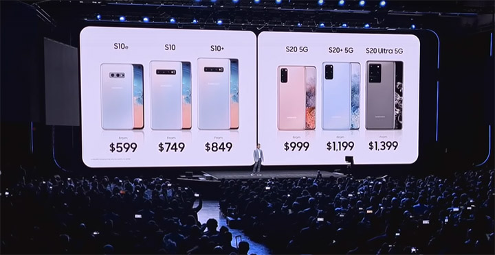 Như chúng ta đã biết, Samsung đã giới thiệu hai mẫu điện thoại "cơ bản" Galaxy S20/S20+ với thiết kế cao cấp và thông số kỹ thuật hàng đầu. Đi kèm với đó là một phiên bản "Ultra", được nâng cấp toàn diện về camera, kích thước màn hình, dung lượng pin, bộ nhớ và cả... giá bán. Hay chiếc điện thoại màn hình gập với nhiều công nghệ đột phá, Galaxy Z Flip.