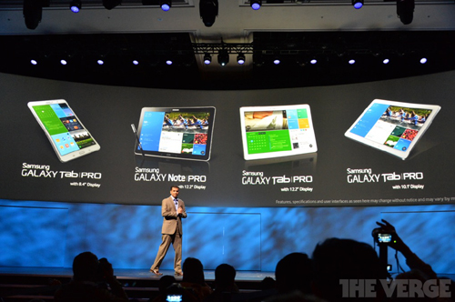 Ngoài TV, máy tính bảng cũng là một sản phẩm nổi bật khác được Samsung giới thiệu. Như vậy, Samsung đã mở rộng dòng máy tính bảng Galaxy bằng dòng sản phẩm Pro mới là Galaxy TabPro và Galaxy NotePro.