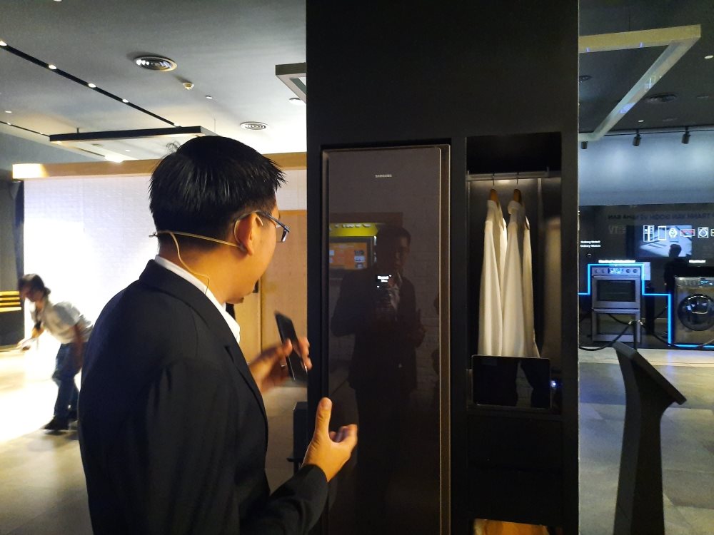 Máy giặt khô đến từ Samsung cũng tích hợp SmartThings, báo thời gian cũng như đồ đang được giặt qua hệ thống Smart Home đến điện thoại hay tablet của người dùng. |