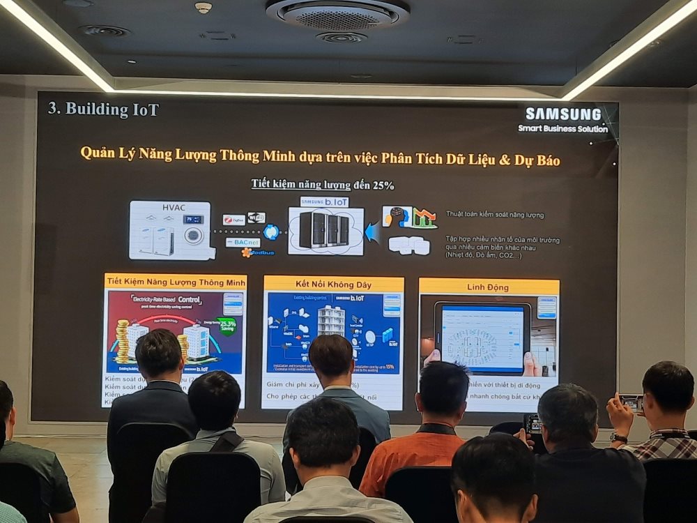 Samsung Smart Building là giải pháp tự động hóa giúp quản lý hiệu quả và tiết kiệm năng lượng, bằng việc kết nối các hệ thống và thiết bị của tòa nhà thông qua IoT.