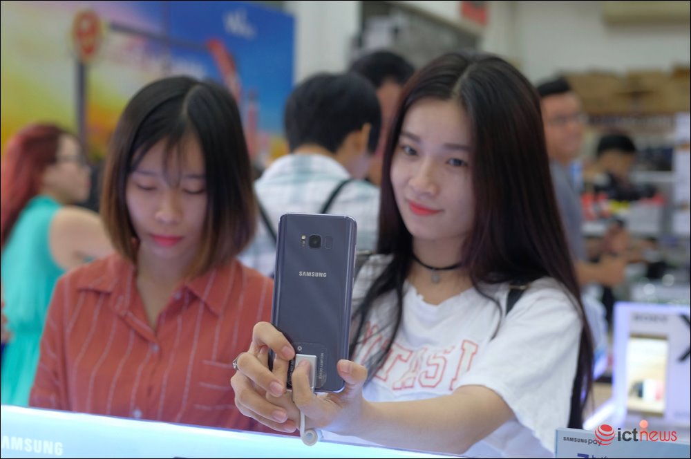 Một người dùng đang thử camera trên smartphone Samsung - Ảnh: Hải Đăng |