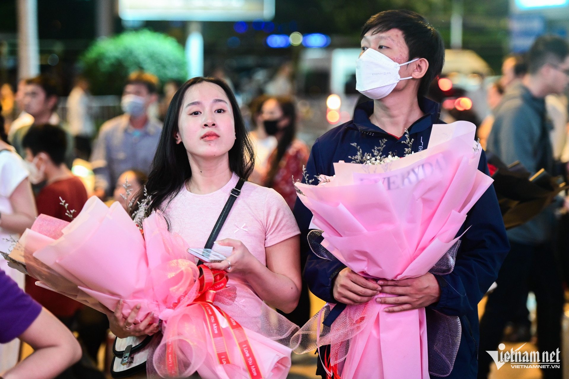 23h, nhiều người đứng ôm hoa cả đêm ngóng chờ giây phút đoàn tụ.