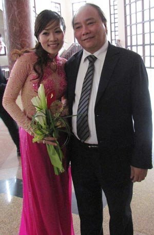 | Bà Đỗ Thu Huyền chụp ảnh lưu niệm cùng Phó Thủ tướng Nguyễn Xuân Phúc. |