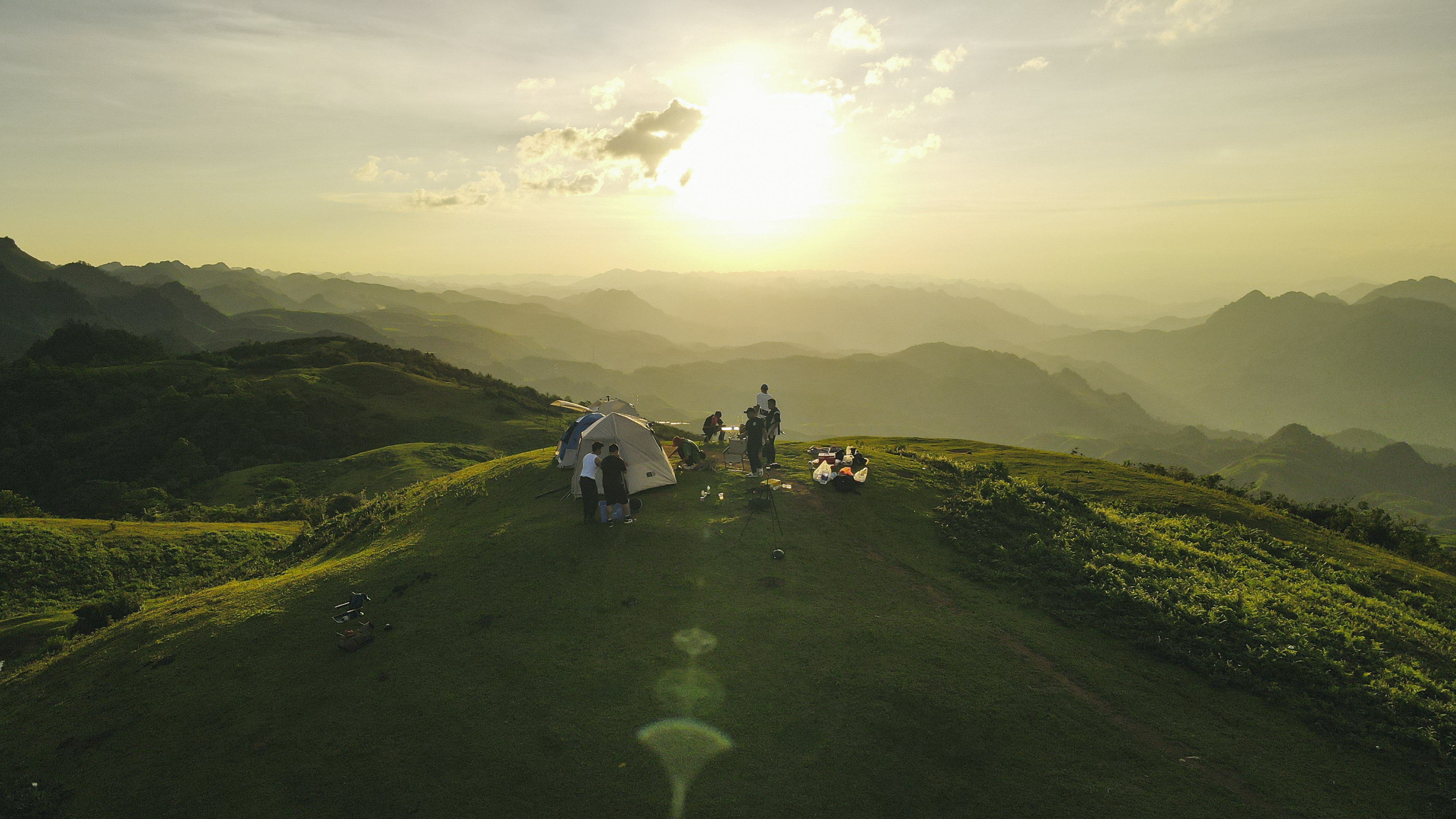 Buổi tối, thời tiết khá thuận lợi, nhóm bạn có thể ngắm trăng, sao, những lớp mây trôi lững lờ, xa xa là thị trấn lấp lánh ánh đèn. Đây là không gian lý tưởng để họ cùng nướng đồ ăn, sưởi lửa và trò chuyện bên nhau.
