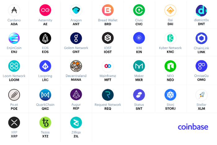 Coinbase – công ty có trụ sở tại San Francisco tiết lộ hỗ trợ cho hơn 30 cái tên tiền ảo – bao gồm các đồng tiền khác như EOS, ADA...