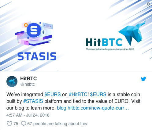 "Chúng tôi đã bán 2 triệu EURS trong hôm nay và được niêm yết trên HitBTC tiếp tục là thành công lớn. Đó là những nỗ lực để chúng tôi cho các nhà đầu tư và người dùng thấy tiềm năng của Stablecoin".