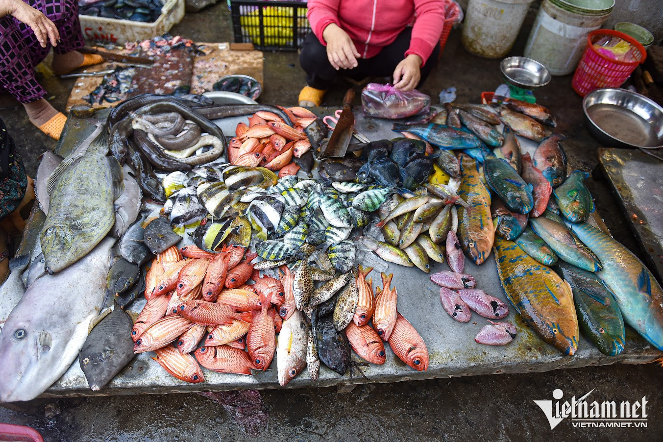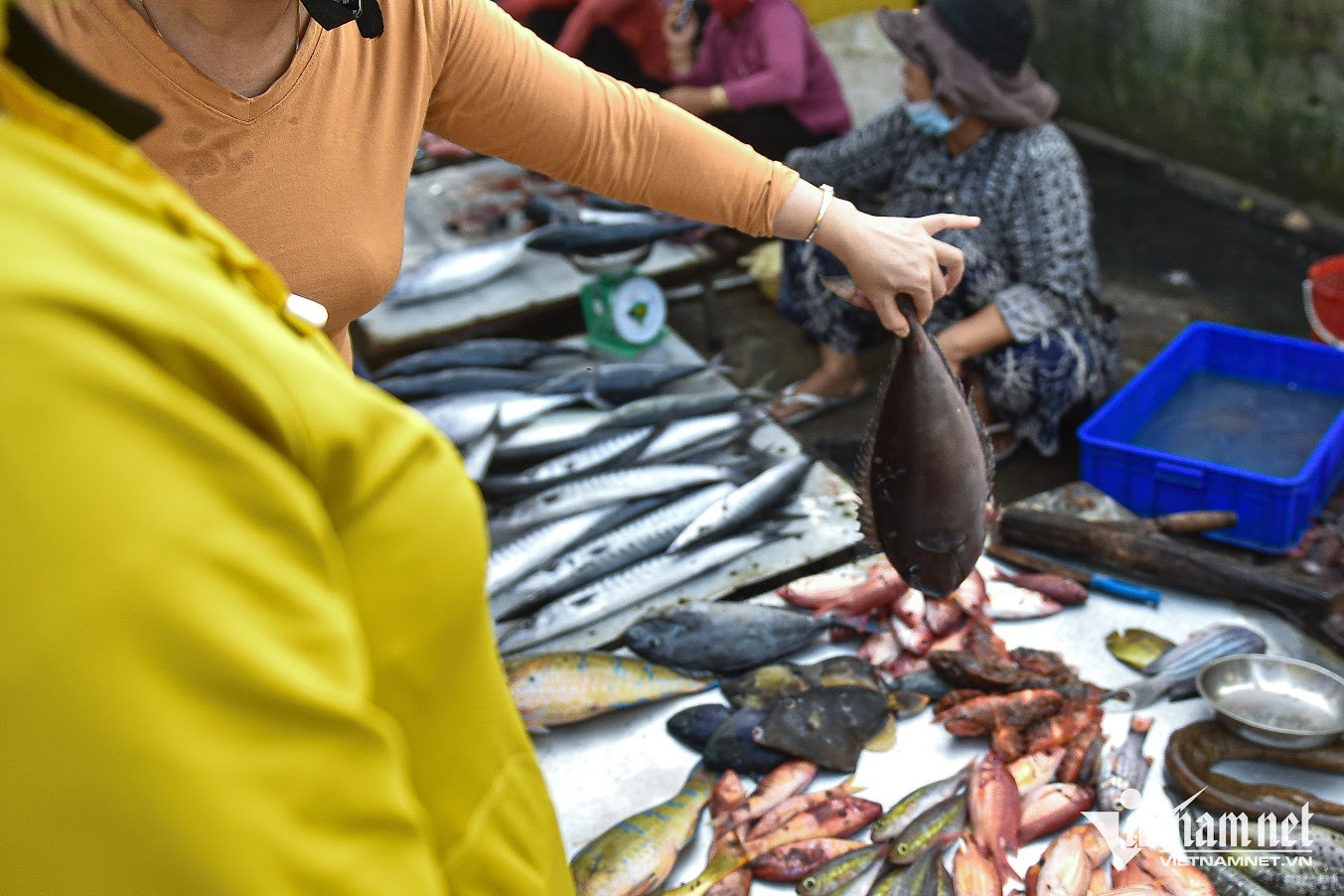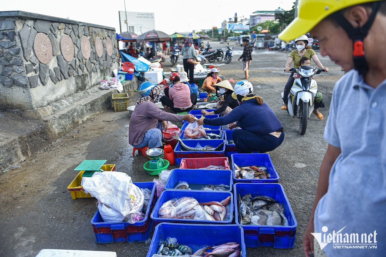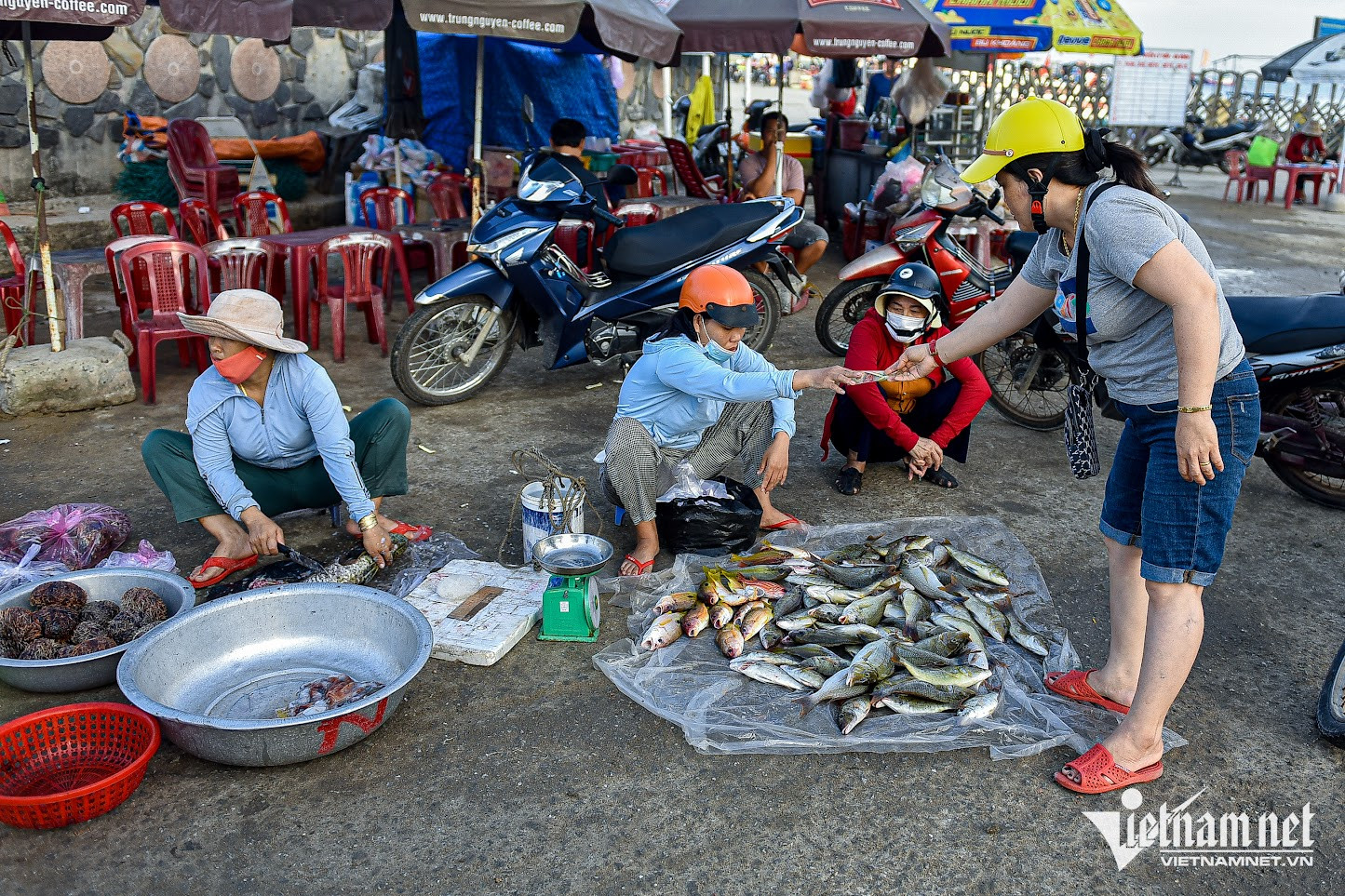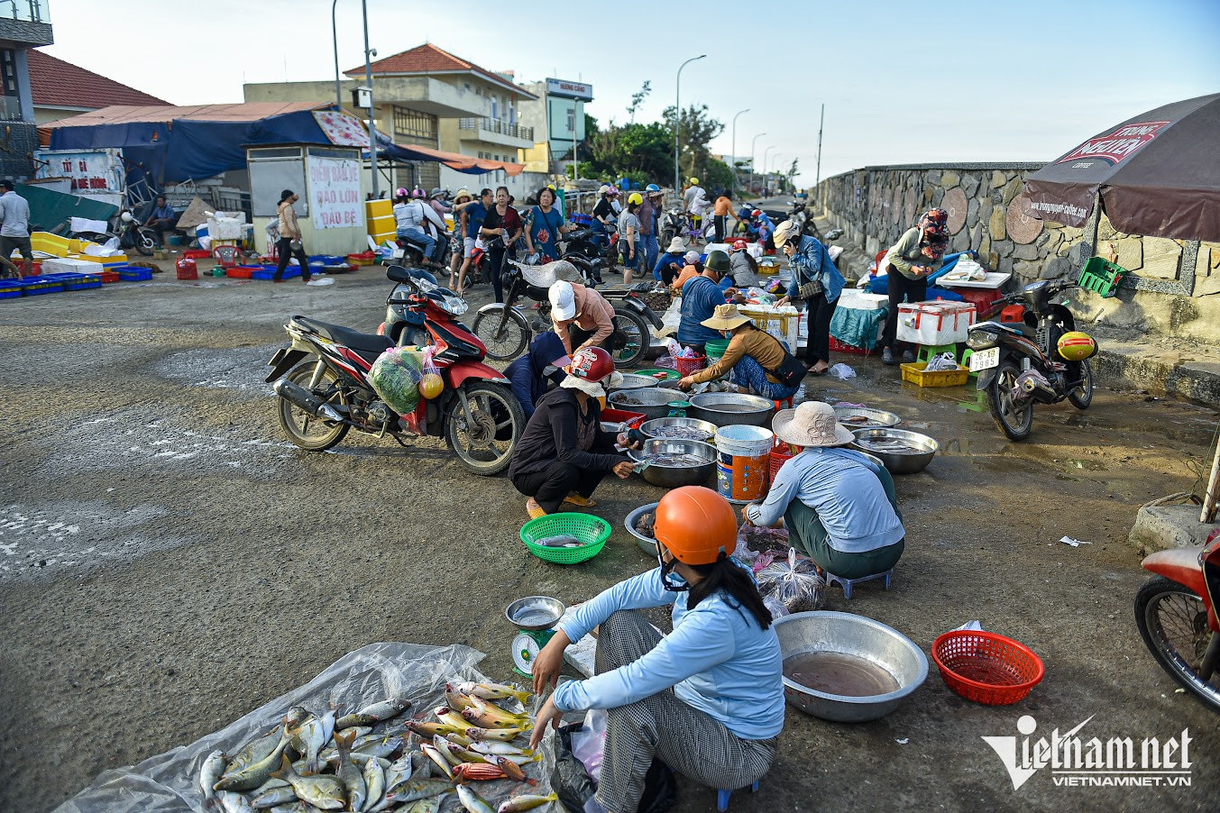 Sáng ngày cuối cùng ở trên đảo Lý Sơn (Quảng Ngãi), nghe theo gợi ý của anh Giàu - một ngư dân trên đảo, tôi dậy sớm, đi dạo đón bình minh quanh đường bao biển, đợi xem các đoàn tàu cập bến và ghé thăm chợ cá. Đáng tiếc, ngày hôm trước biển động, bến tàu cá không tấp nập như mọi khi. Anh Giàu lái xe chở tôi về chợ cá nằm ngay tại cầu cảng Lý Sơn.Khu chợ này họp từ sớm tinh mơ, chừng 4h30-5h sáng và chỉ kéo dài 2-3 tiếng. Hải sản ở đây đều tươi rói, được đánh bắt và chở về trong đêm hay rạng sángTrước 6h sáng, khách của chợ chủ yếu là các bà, các chị - người dân địa phương. "Trước đây, chợ cá không họp ở khu vực này nhưng từ khi du lịch phát triển, người dân ra đây mở bán cho du khách dễ tìm, dễ mua và cũng tiện đóng gói, vận chuyển ra tàu về đất liền", anh Giàu kểKhoảng 6h-7h sáng, nhiều du khách bắt đầu tìm tới đây. Khu chợ không chỉ là nơi mua - bán hải sản mà còn là địa điểm để du khách thưởng lãm những món quà đại dương đã ban tặng cho con người, những loại hải sản "lạ", hiếm thấy trong các khu chợ trên đất liền"Đặc sản của Lý Sơn là cua huỳnh đế, tôm hùm bông nhưng khó mà tìm thấy chúng ở các chợ cá. Ngư dân đánh bắt được các loại trên đều được tiểu thương, chủ các nhà hàng đặt mua ngay với giá cao", anh Giàu cho biết. Dù vậy, khu chợ vẫn khiến du khách "thỏa mãn thị giác" với nhiều loại cá màu sắc sặc sỡ, ngoại hình khác lạ như cá mú đỏ, cá bã trầu, cá dìa bông, cá hồng nghệ, cá mó xanh, cá chim, cá thìa lìa...Tiểu thương này đang giới thiệu cho tôi con cá mú nặng gần 11kg. "Sáng nay, con này là to nhất chợ đấy. Hôm qua, sạp tôi có con khổng lồ 40kg luôn, khách đi qua ai cũng mải mê chụp ảnh", người tiểu thương tại chợ giới thiệu. Những con cá mú lớn thế này có giá từ 250.000-280.000 đồng/kg. "Trong đất liền khó kiếm loại cá mú tự nhiên to, tươi mà giá rẻ thế này lắm", tiểu thương nói thêmMột đặc sản của Lý Sơn vào khoảng tháng 7-8 hàng năm là nhum biển. Vỏ ngoài loại hải sản xấu xí, nhìn như một quả cầu gai nhưng khi chế biến lại thơm ngon khó cưỡng. Nhum biển có thể nướng mỡ hành trên than hoa xèo xèo, mùi thơm phức, ăn béo ngậy, cũng có thể nấu cháo hoặc làm món nhum đánh trứng, ăn rất tốn cơm.Tháng 7-8, nhum nhiều gạch, rất thơm ngon nên được du khách ưa chuộng. Ngư dân sẽ khéo léo tách phần gạch, cho vào các hộp nhựa chứa nước sạch để khách mua về làm quà. Gạch nhum được bán tại chợ cá sáng sớm với mức giá 200.000 đồng/lọ (500gram). "Hai ngày ở đây tôi đã thưởng thức nhum nướng, cháo nhum. Món nào cũng ngon. Nhưng mua nhum về thì xách nặng quá nên tôi chọn mua gạch nhum. Nghe nói ăn phần gạch này ngon và bổ lắm", bà Tôn Thị Thảo (du khách tới từ Đồng Nai) chia sẻ
