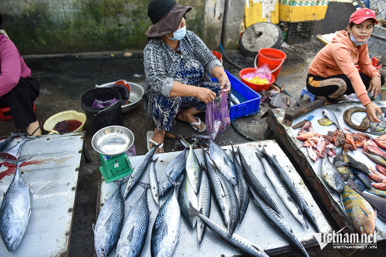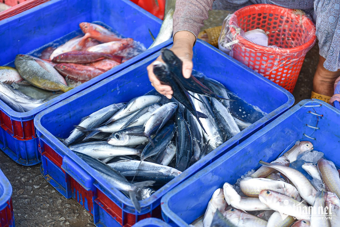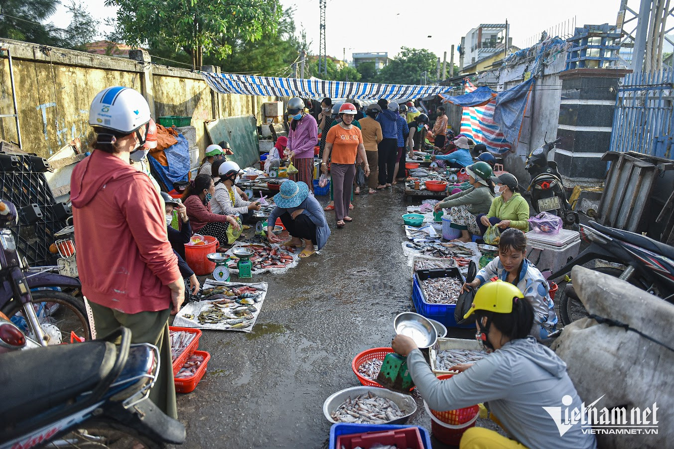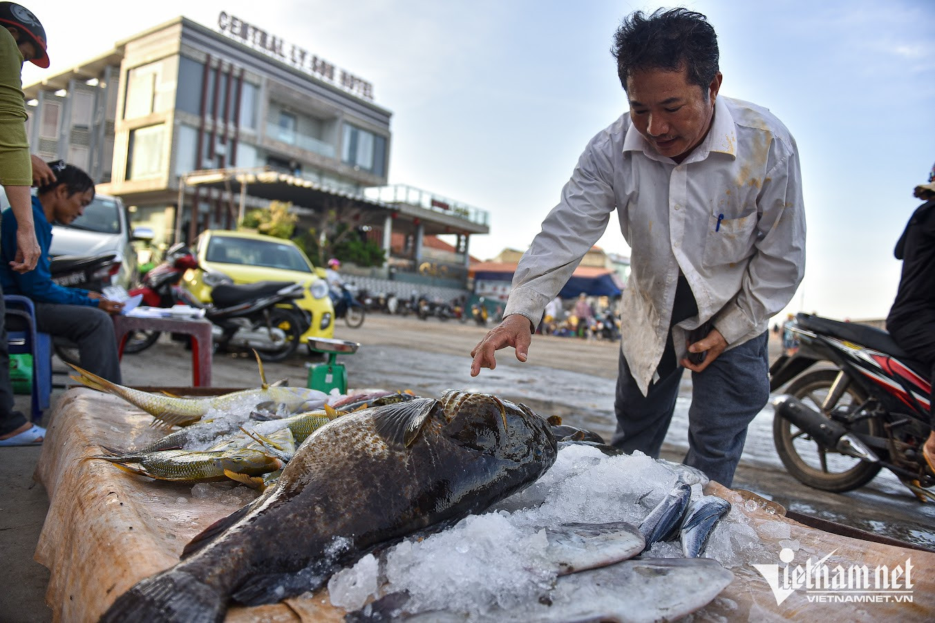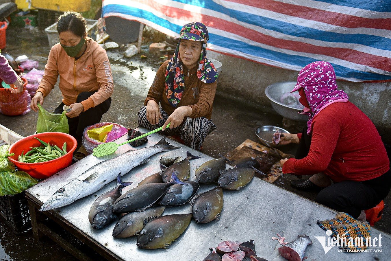 Sáng ngày cuối cùng ở trên đảo Lý Sơn (Quảng Ngãi), nghe theo gợi ý của anh Giàu - một ngư dân trên đảo, tôi dậy sớm, đi dạo đón bình minh quanh đường bao biển, đợi xem các đoàn tàu cập bến và ghé thăm chợ cá. Đáng tiếc, ngày hôm trước biển động, bến tàu cá không tấp nập như mọi khi. Anh Giàu lái xe chở tôi về chợ cá nằm ngay tại cầu cảng Lý Sơn.Khu chợ này họp từ sớm tinh mơ, chừng 4h30-5h sáng và chỉ kéo dài 2-3 tiếng. Hải sản ở đây đều tươi rói, được đánh bắt và chở về trong đêm hay rạng sángTrước 6h sáng, khách của chợ chủ yếu là các bà, các chị - người dân địa phương. "Trước đây, chợ cá không họp ở khu vực này nhưng từ khi du lịch phát triển, người dân ra đây mở bán cho du khách dễ tìm, dễ mua và cũng tiện đóng gói, vận chuyển ra tàu về đất liền", anh Giàu kểKhoảng 6h-7h sáng, nhiều du khách bắt đầu tìm tới đây. Khu chợ không chỉ là nơi mua - bán hải sản mà còn là địa điểm để du khách thưởng lãm những món quà đại dương đã ban tặng cho con người, những loại hải sản "lạ", hiếm thấy trong các khu chợ trên đất liền"Đặc sản của Lý Sơn là cua huỳnh đế, tôm hùm bông nhưng khó mà tìm thấy chúng ở các chợ cá. Ngư dân đánh bắt được các loại trên đều được tiểu thương, chủ các nhà hàng đặt mua ngay với giá cao", anh Giàu cho biết. Dù vậy, khu chợ vẫn khiến du khách "thỏa mãn thị giác" với nhiều loại cá màu sắc sặc sỡ, ngoại hình khác lạ như cá mú đỏ, cá bã trầu, cá dìa bông, cá hồng nghệ, cá mó xanh, cá chim, cá thìa lìa...Tiểu thương này đang giới thiệu cho tôi con cá mú nặng gần 11kg. "Sáng nay, con này là to nhất chợ đấy. Hôm qua, sạp tôi có con khổng lồ 40kg luôn, khách đi qua ai cũng mải mê chụp ảnh", người tiểu thương tại chợ giới thiệu. Những con cá mú lớn thế này có giá từ 250.000-280.000 đồng/kg. "Trong đất liền khó kiếm loại cá mú tự nhiên to, tươi mà giá rẻ thế này lắm", tiểu thương nói thêmMột đặc sản của Lý Sơn vào khoảng tháng 7-8 hàng năm là nhum biển. Vỏ ngoài loại hải sản xấu xí, nhìn như một quả cầu gai nhưng khi chế biến lại thơm ngon khó cưỡng. Nhum biển có thể nướng mỡ hành trên than hoa xèo xèo, mùi thơm phức, ăn béo ngậy, cũng có thể nấu cháo hoặc làm món nhum đánh trứng, ăn rất tốn cơm.Tháng 7-8, nhum nhiều gạch, rất thơm ngon nên được du khách ưa chuộng. Ngư dân sẽ khéo léo tách phần gạch, cho vào các hộp nhựa chứa nước sạch để khách mua về làm quà. Gạch nhum được bán tại chợ cá sáng sớm với mức giá 200.000 đồng/lọ (500gram). "Hai ngày ở đây tôi đã thưởng thức nhum nướng, cháo nhum. Món nào cũng ngon. Nhưng mua nhum về thì xách nặng quá nên tôi chọn mua gạch nhum. Nghe nói ăn phần gạch này ngon và bổ lắm", bà Tôn Thị Thảo (du khách tới từ Đồng Nai) chia sẻ