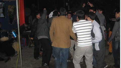 Mồ hôi vẫn lấm tấm trên trán khi vừa tham gia nhảy, chú rể Giáp vừa nới lỏng cái cà - vạt trên cổ, vừa nói như quát vào tai tôi, để át đi tiếng nhạc: “Có nhảy nhót thế này mới sung, thanh niên làng mới tới góp vui nhiều chứ em. Đám cưới nào họ cũng làm vậy, mình không theo không được, không có nhạc nhẽo, buồn lắm". Nói xong, chú rể lại tươi cười, bước xuống hòa vào đám đông, lại lắc mông, búng tay, đầu giật giật theo điệu nhạc.