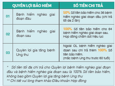 Đặc biệt, với trường hợp mắc bệnh ung thư, sẽ chi trả thêm 100% số tiền bảo hiểm để đảm bảo nguồn kinh phí chữa trị.
