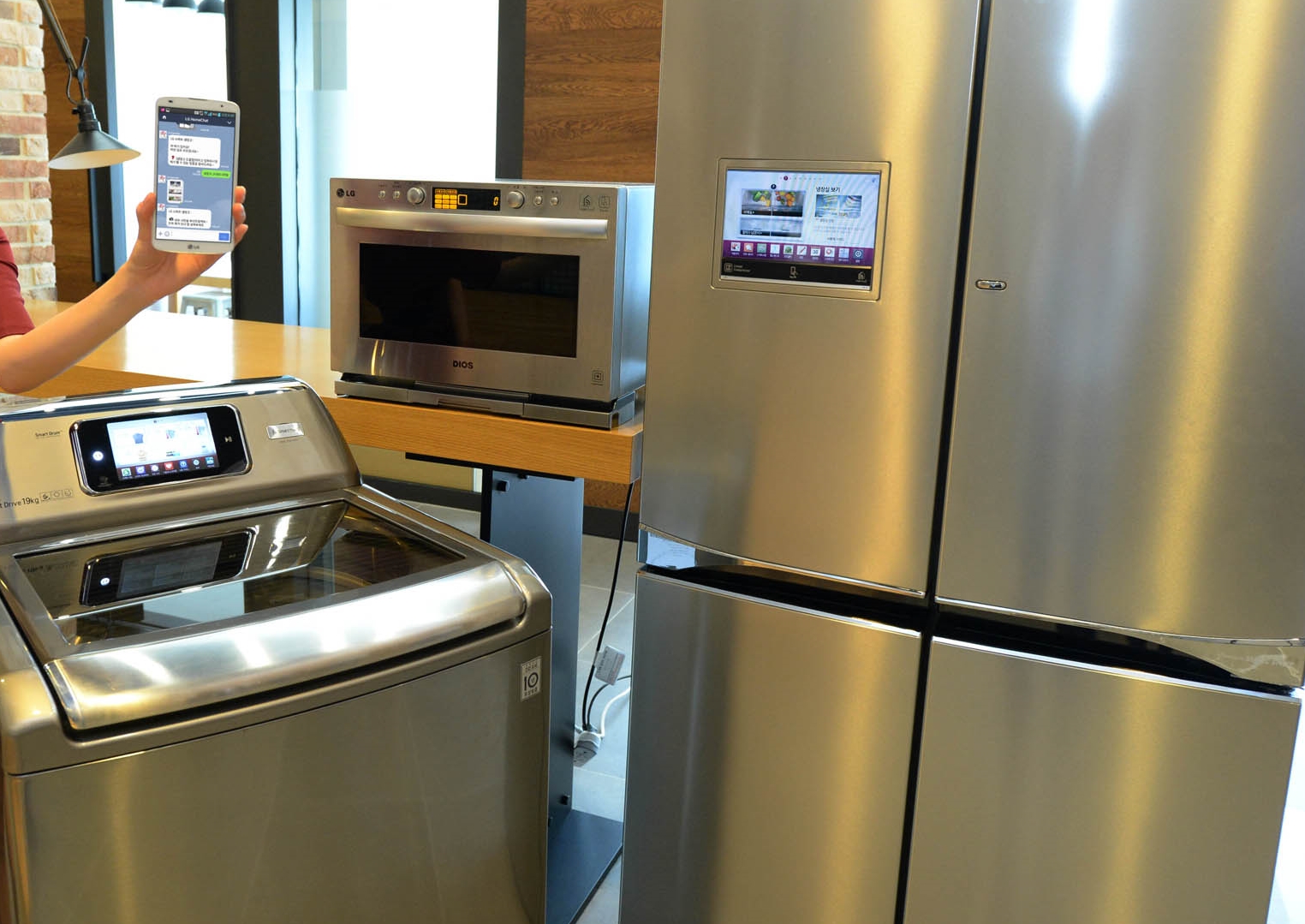 Dòng sản phẩm thông minh của LG đã được nâng lên một tầm cao mới, với tủ lạnh được tích hợp camera, máy giặt được cài đặt phần mềm HomeChat™ giúp người sử dụng tải và khởi động các chương trình giặt từ xa, hay lò vi sóng quang có hỗ trợ NFC và Wifi, thuận tiện cho việc điều khiển từ bất cứ đâu.