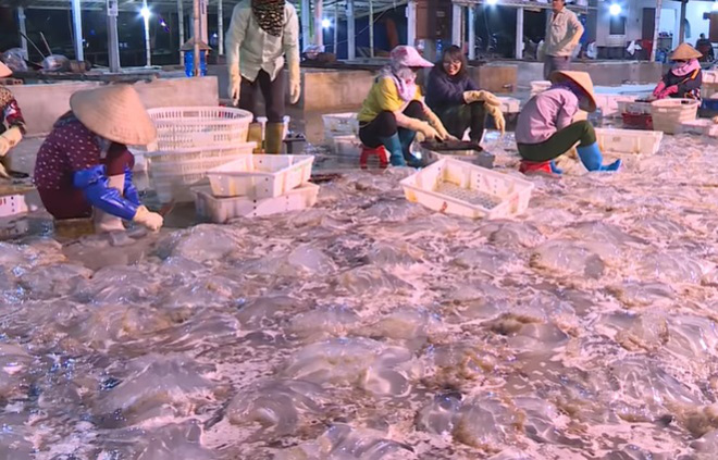 Năm nay, có đến 20 ngày trong 1 tháng ngư dân có thể khai thác sứa. Mỗi buổi tối, các tàu bè thường đánh bắt được từ 3.000 - 4.000 con sứa.