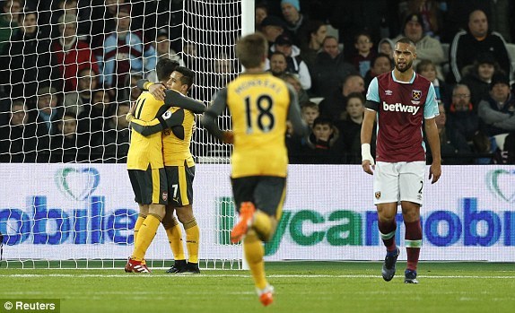 Trong một đợt lên bóng tốc độ khoét vào cánh phải của West Ham, Monreal trả ngược cho Ramsey rồi Ozil liên tiếp dứt điểm cận thành nhưng thủ thành Randolph và hậu vệ chủ nhà đã chơi quả cảm.