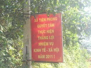 Mặc dù đã sang năm 2013 nhưng đường vào xã Tiên Phong, huyện Tiên Phước, tỉnh Quảng Nam vẫn treo tấm pa - nô “Xã Tiên Phong quyết tâm thực hiện thắng lợi nhiệm vụ kinh tế - xã hội năm 2011”.
