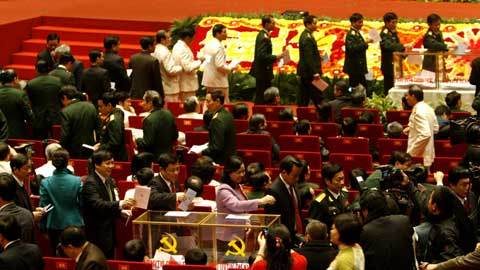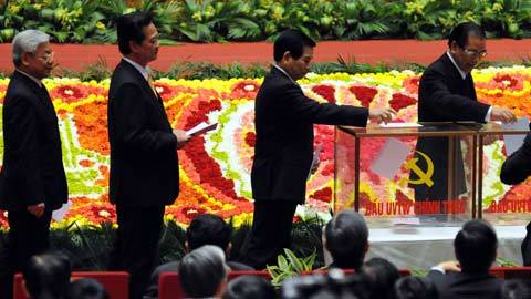 Tổng bí thư Nông Đức Mạnh, Chủ tịch nước Nguyễn Minh Triết, Thủ tướng Nguyễn Tấn Dũng và Chủ tịch Quốc hội Nguyễn Phú Trọng bỏ phiếu |