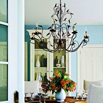 loại đèn chùm bằng sắt trang trí. Kiểu đèn này là sự kết hợp giữa hai phong cách