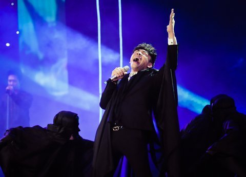 | Việt Anh với "Con ma" của nhạc sĩ Nguyễn Hải Phong. |