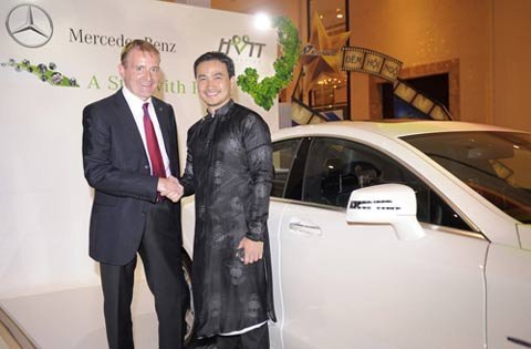 | Ông Michael Behrens, CEO Mercedes-Benz VN chúc mừng và gửi lời cảm ơn Chi Bảo trong chương trình Một ngôi sao với tấm lòng |