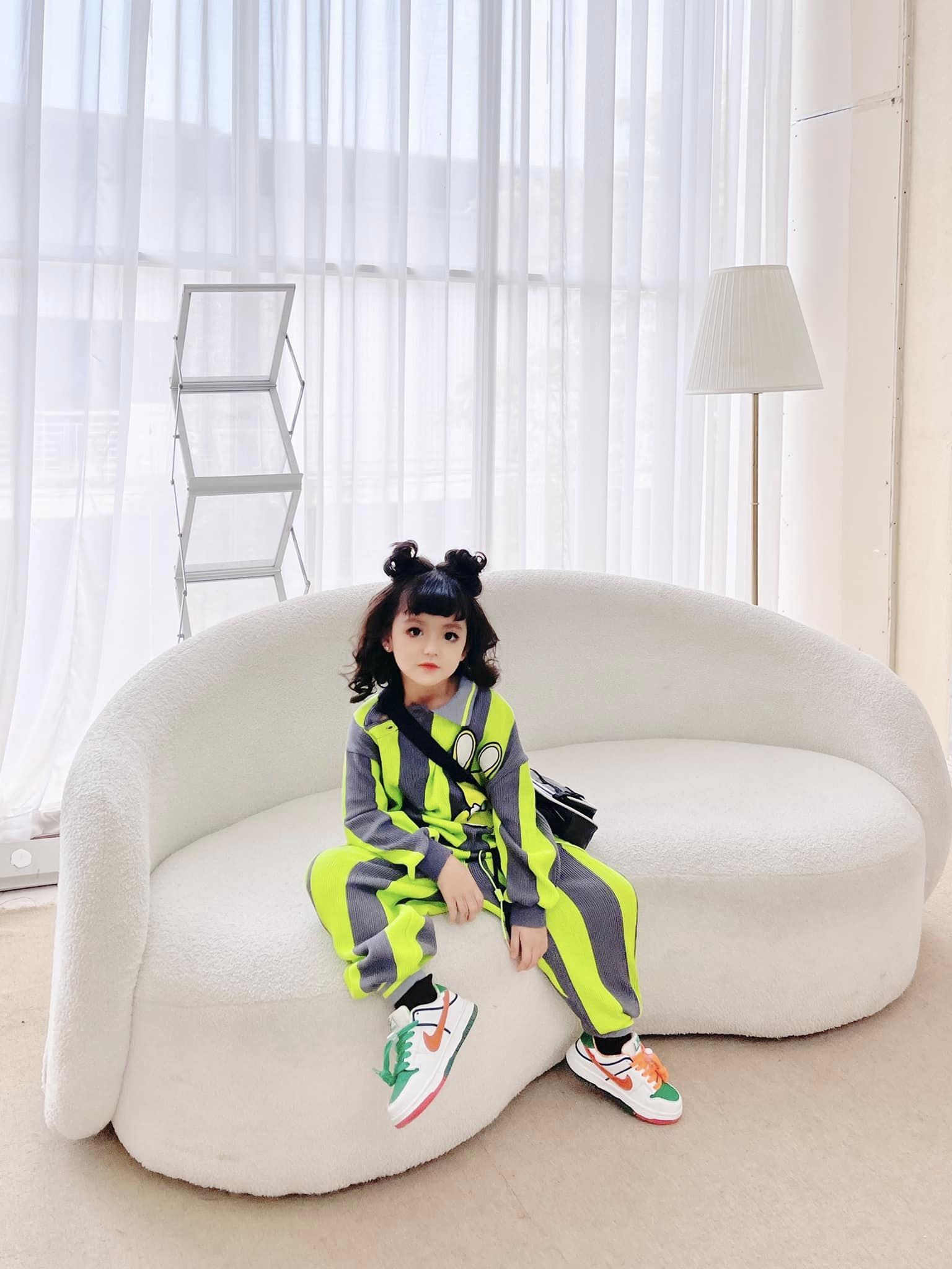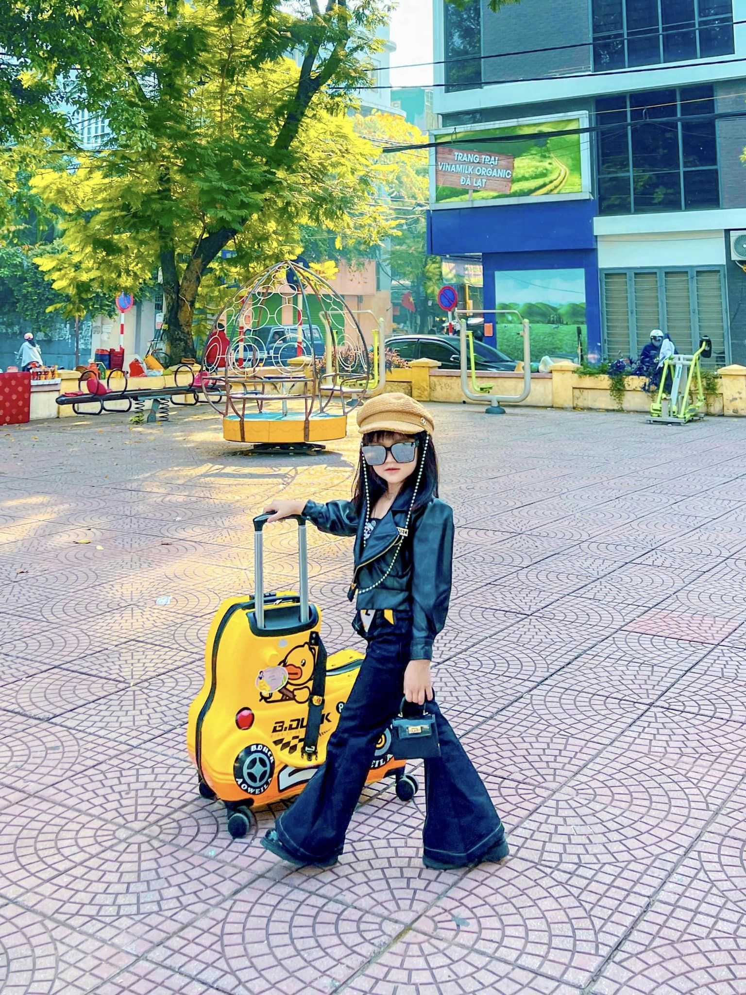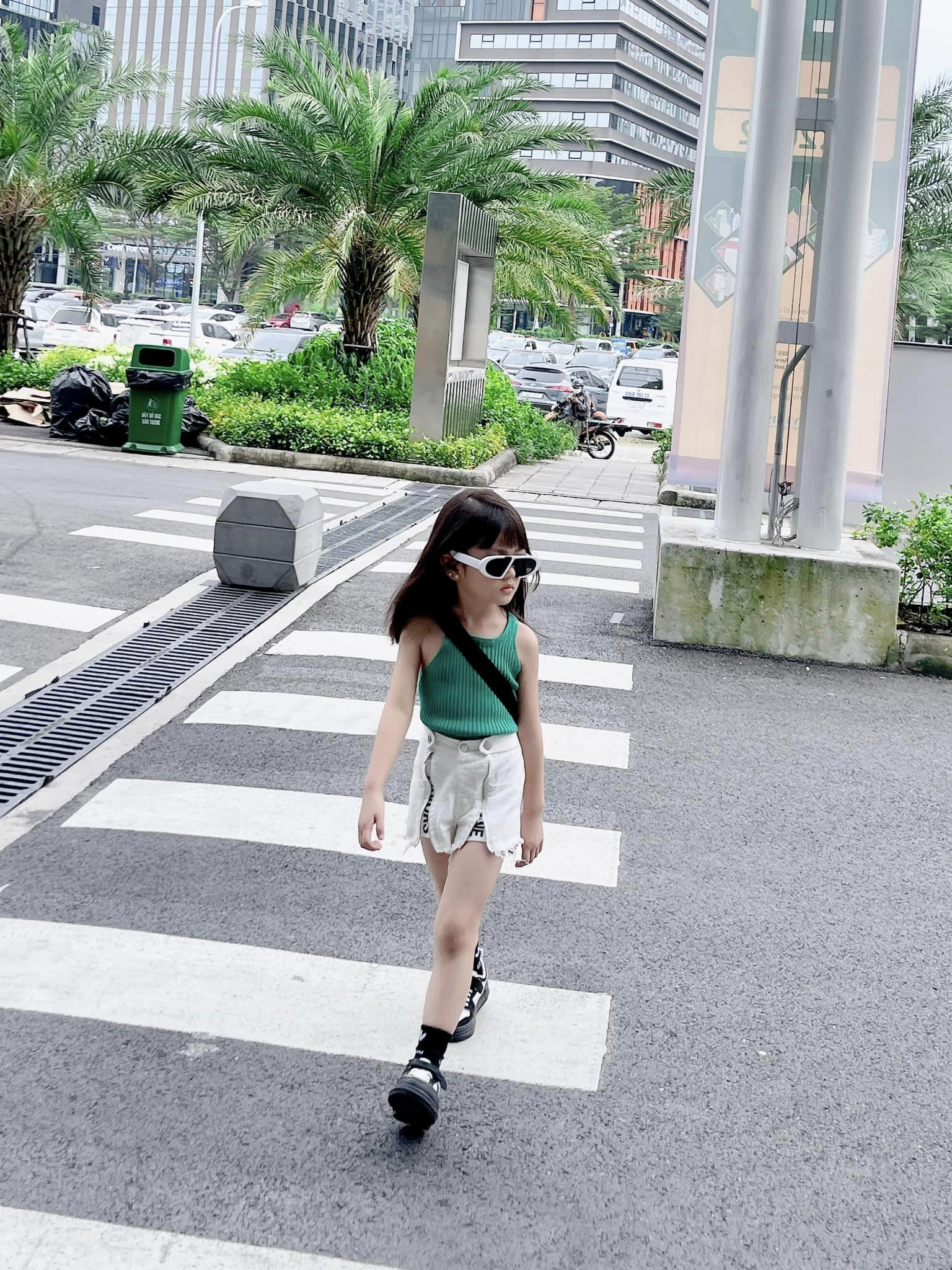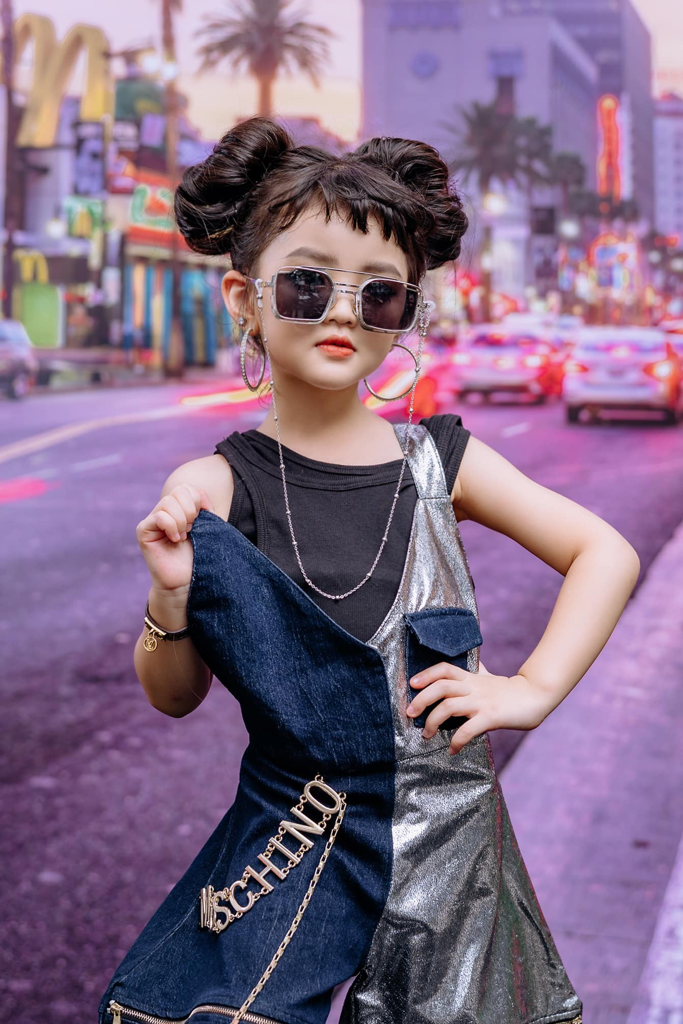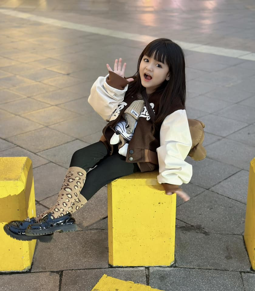 Hình ảnh đời thường của An Nhiên. Cô bé được mẹ cho ăn mặc sành điệu, không khác gì fashionista nhí.