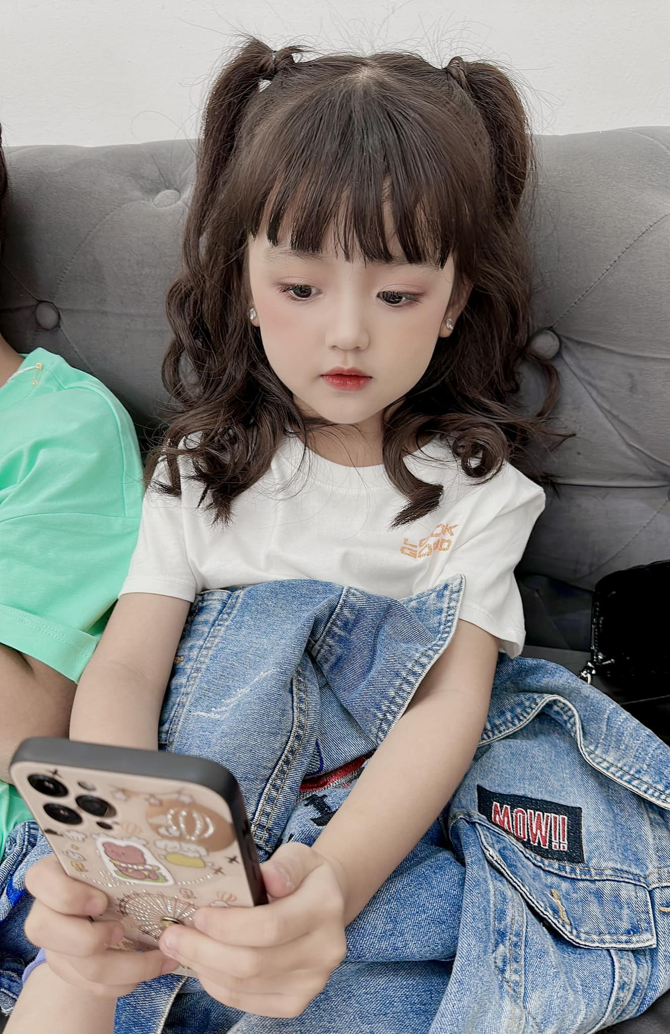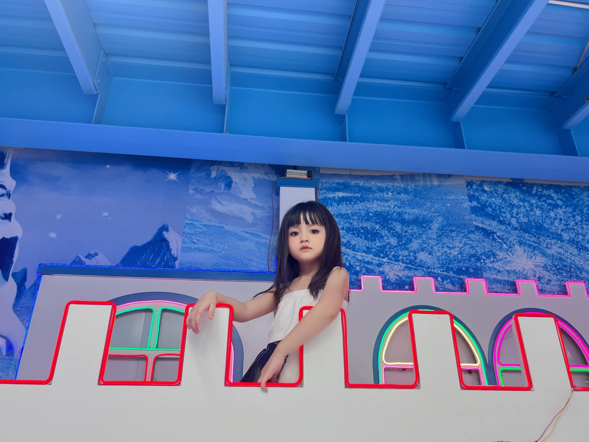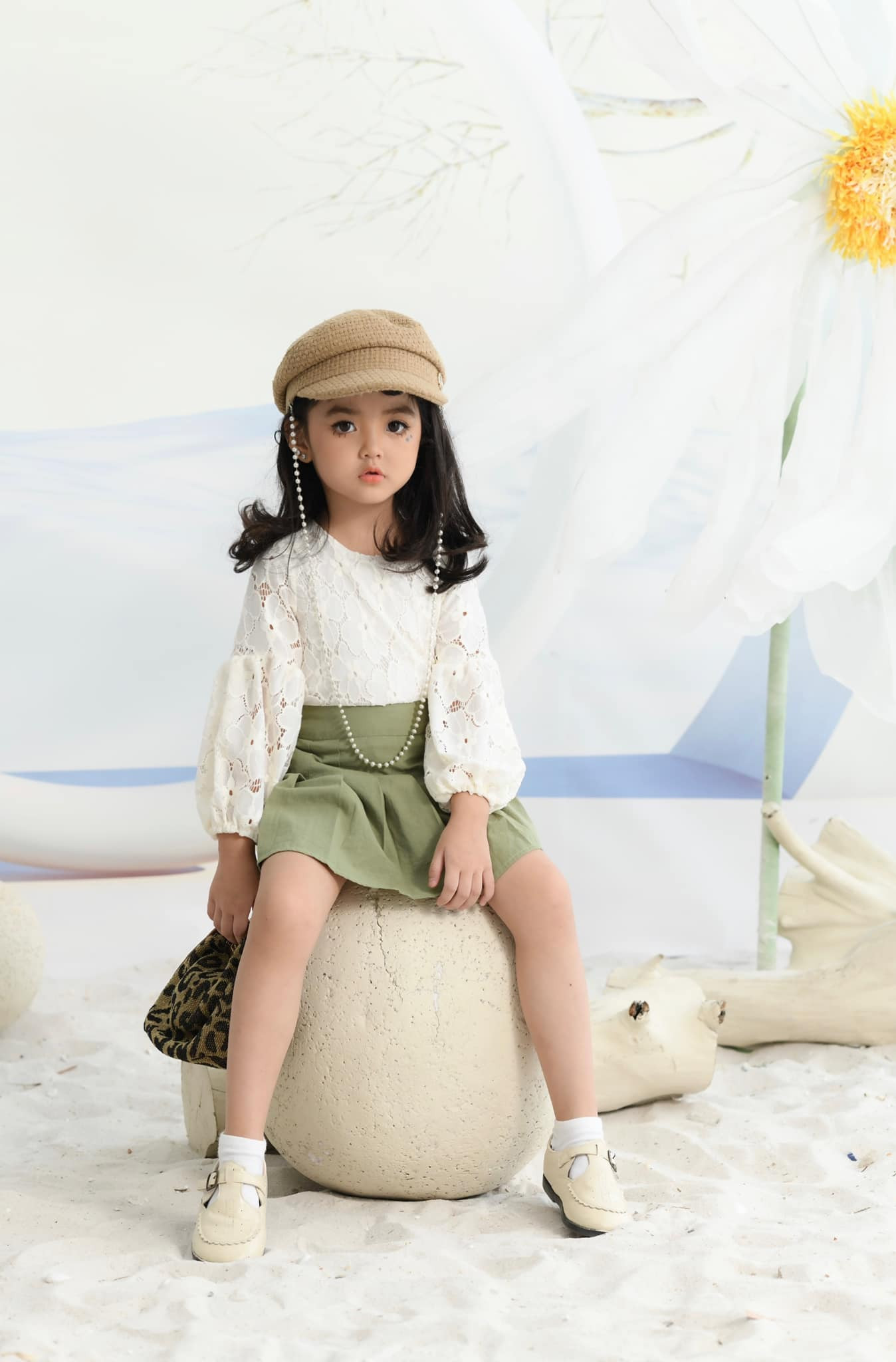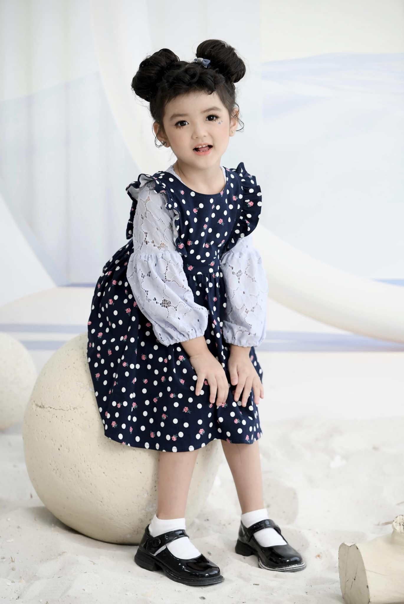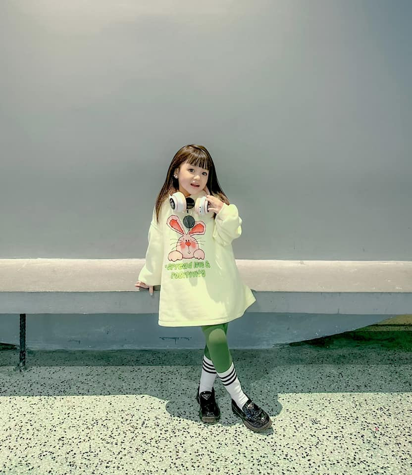 Hình ảnh đời thường của An Nhiên. Cô bé được mẹ cho ăn mặc sành điệu, không khác gì fashionista nhí.