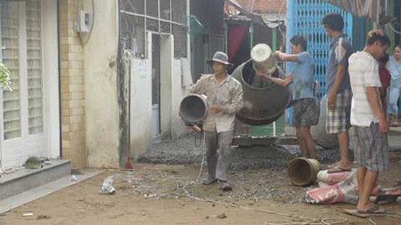 | Người dân đang tham gia thi công làm hẻm 229/46 |