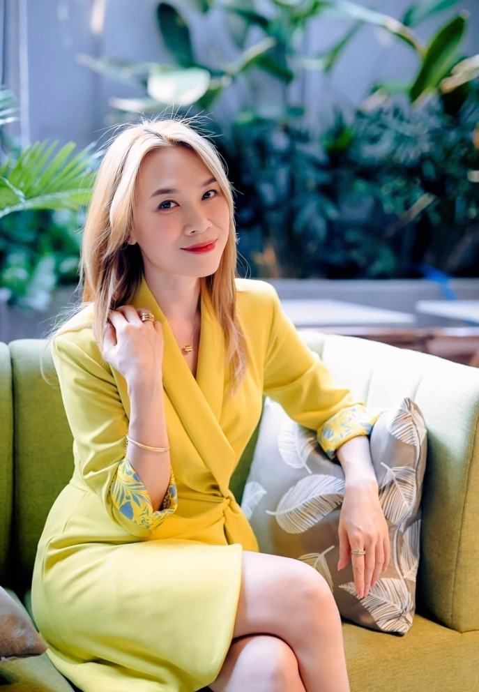 Sao Việt 14/8: Mỹ Tâm tự tin sắc vóc với bộ váy màu vàng chanh. Ca sĩ bày tỏ phấn khởi vì có buổi trò chuyện ý nghĩa cùng mọi người.