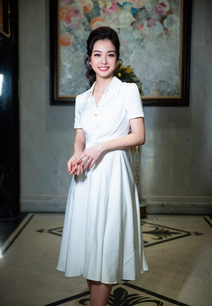 Sao Việt 19/4: Jennifer Phạm diện váy trắng thanh lịch, tóc búi khi dự sự kiện. "Nếu như trong tim có trăng sáng. Thì hà cớ gì sợ ảo ảnh thế gian", cô chia sẻ.