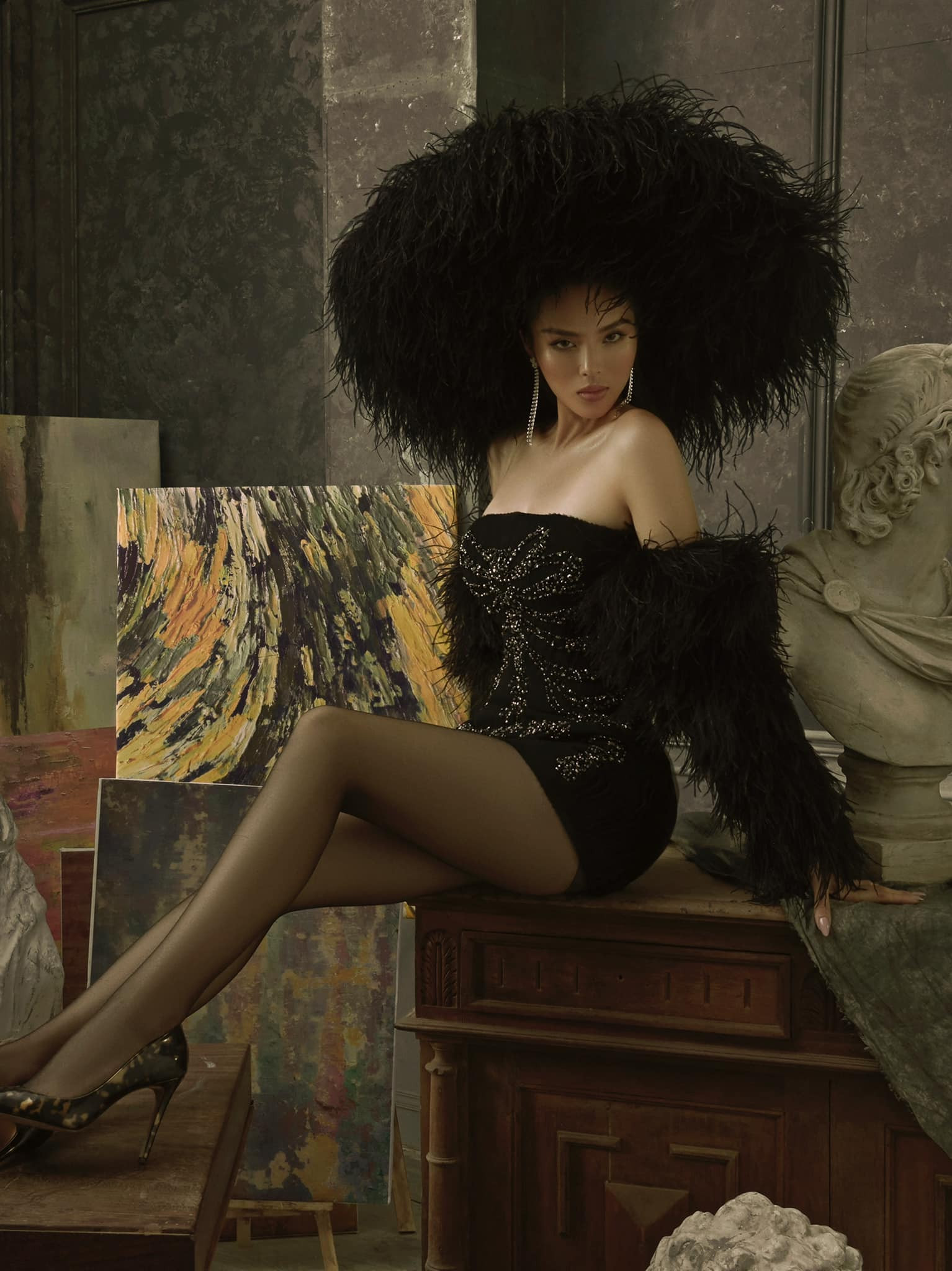 Hoa hậu Kỳ Duyên vô cùng xinh đẹp lộng lẫy với bộ đầm đen lông khác lạ. Diễn viên Bảo Thanh hạnh phúc sánh bước bên chồng.